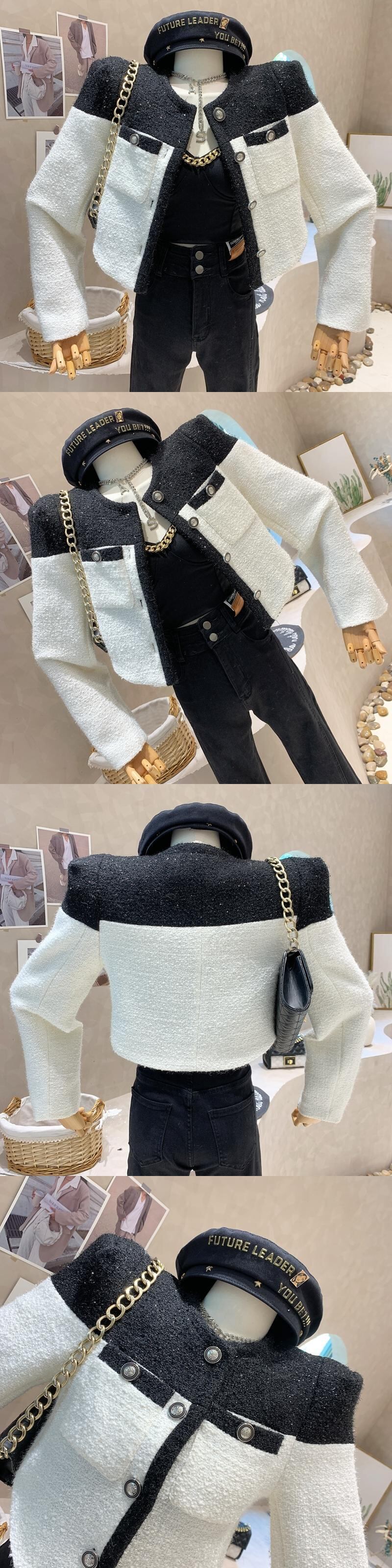 小さな香りツイード ジャケット コート女性春フレンチ ショート ジャケット高級ウール生き抜く スプリング 春物 mes10819471187