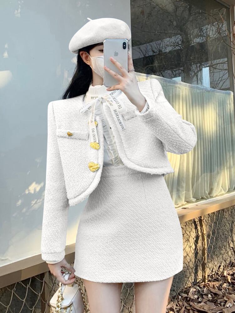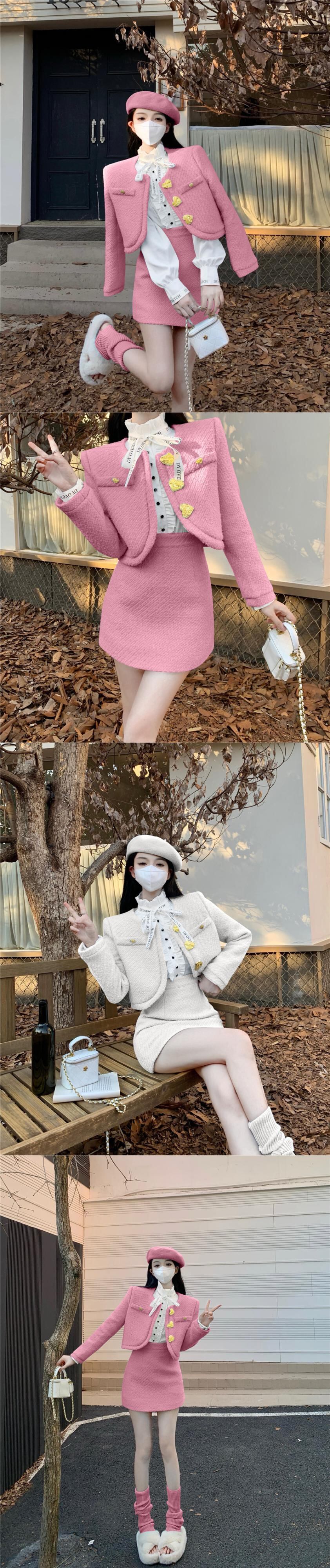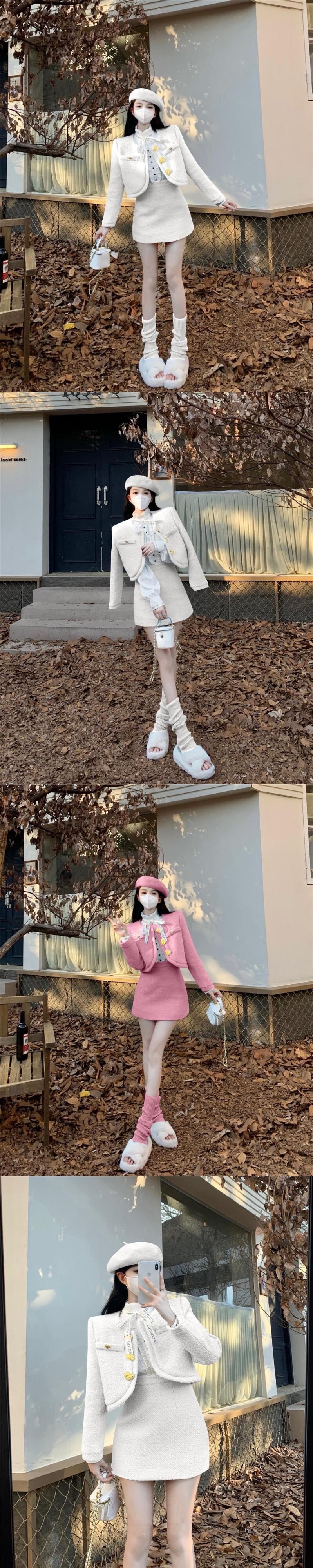 2 点セット女性衣装ショート ジャケット コート クロップ トップ + ミニ スカート スーツ甘い 2 点セット 大人ガーリー スウィート キュート カジュアル mes760159964