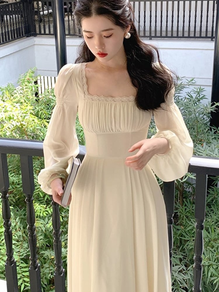 フランスのシフォンミディドレスの女性の妖精のドレス春長袖イブニングパーティードレス Vestidos ロング スプリング 春物 mes17252566775