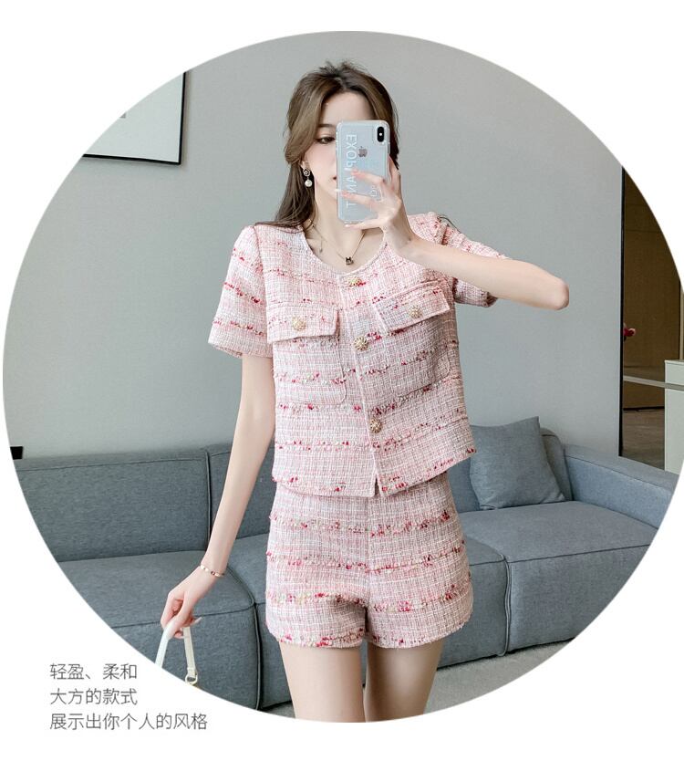 フレンチ スモール フレグランス ツイード ツーピース セット レディース ショート ジャケット コート + ショート セット フライド ストリート 2ピース パンツ セット mes26985804844