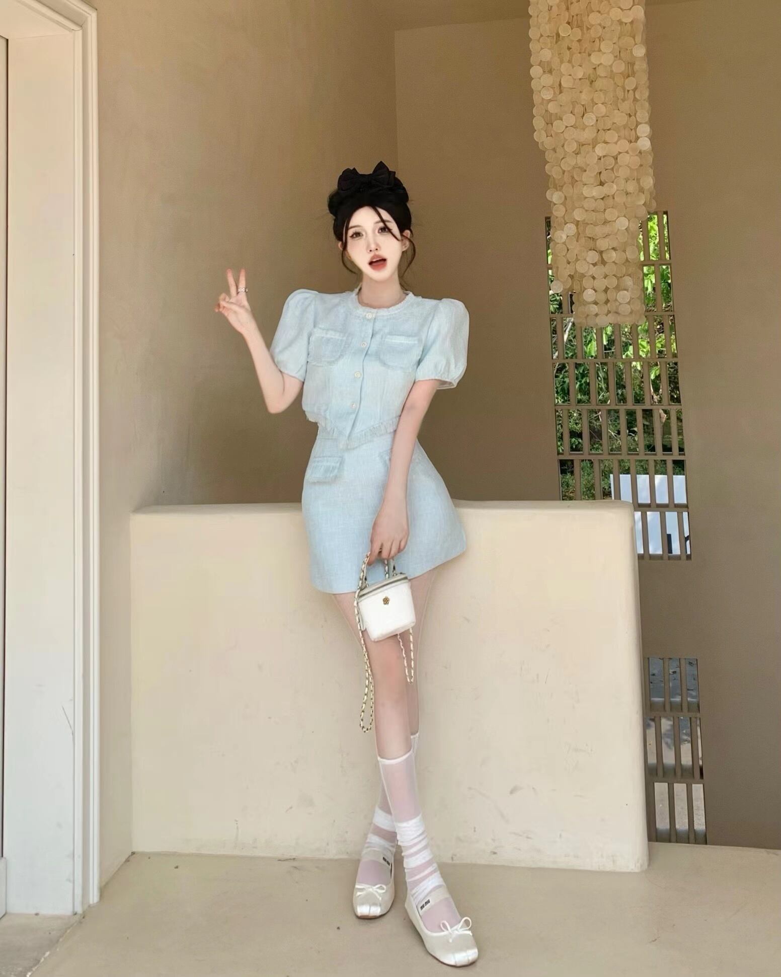 甘い小さな香り 2 点セット女性ショート ジャケット コート & ミニ スカート セット ストリート ツー ピース衣装 大人ガーリー スウィート キュート カジュアル mes64526494225
