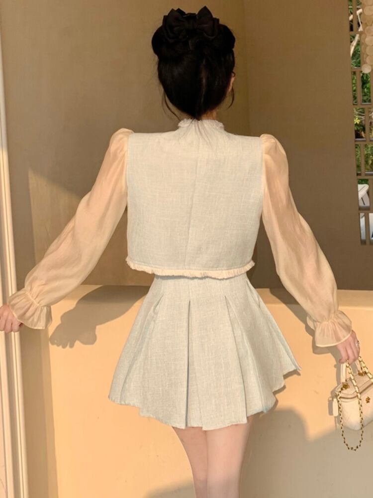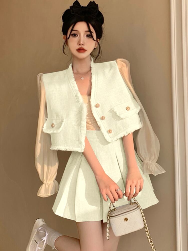 Tel スモール フレグランス 2 点セット レディース ショート ジャケット コート + プリーツ スカート セット スイート ツーピース スーツ 大人ガーリー スウィート キュート カジュアル