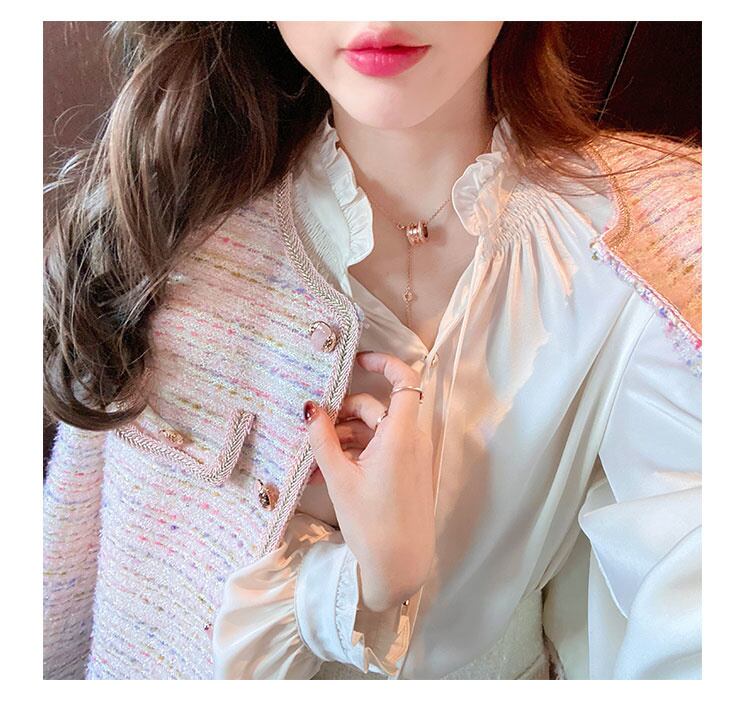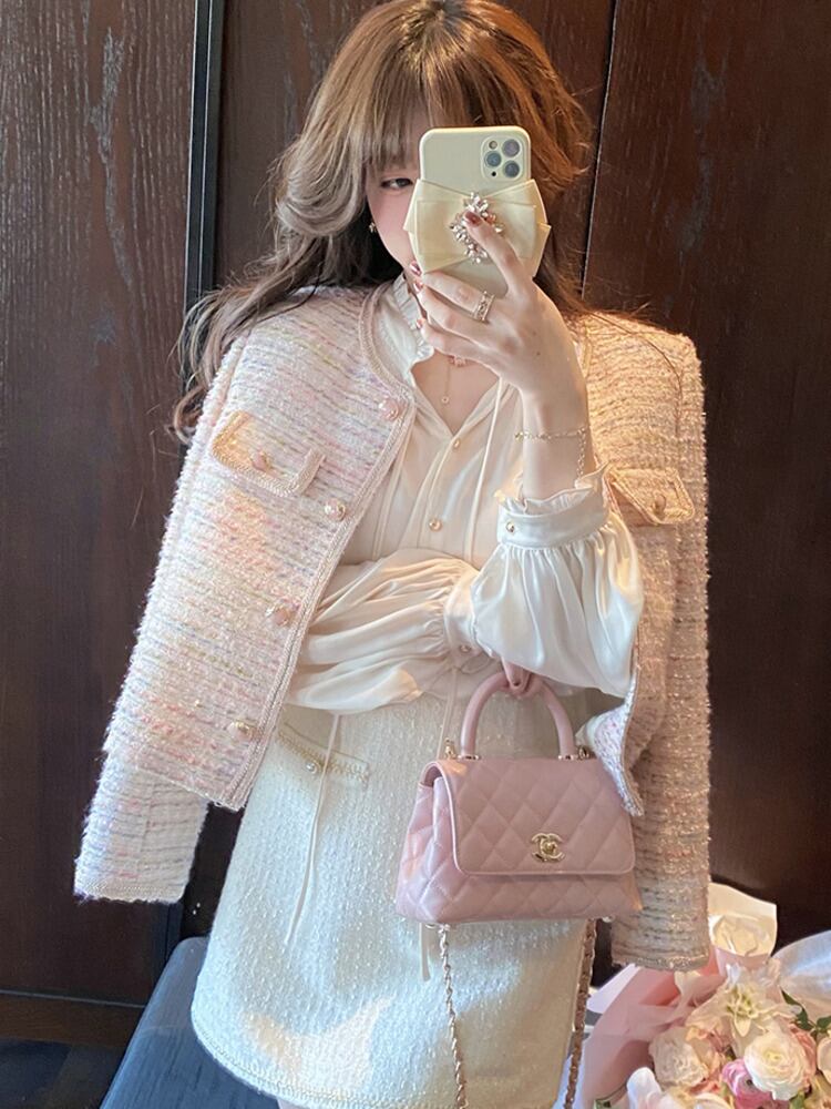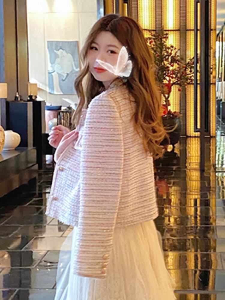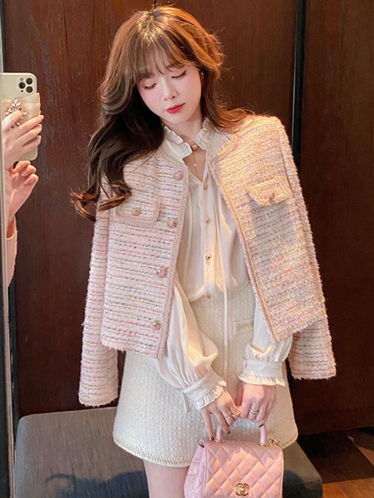 フランスの高級スモールフレグランスツイードジャケットコートウールショートコートスリムアウターウェアクロップトップ