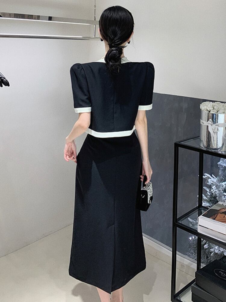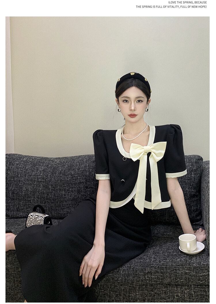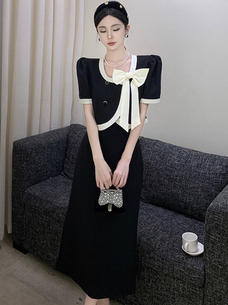 小さなフレグランス 2 点セット弓シャツ クロップ トップ + ロング スカート スーツ夏 2 ピース衣装 リボン サマー 夏物