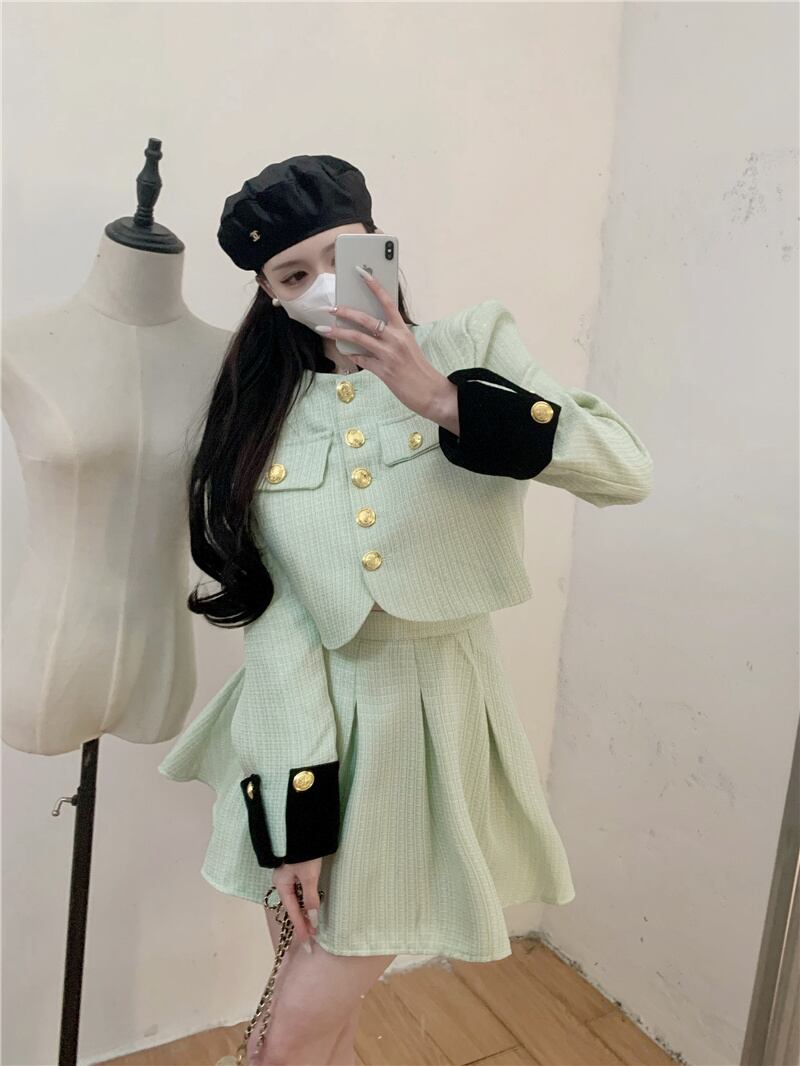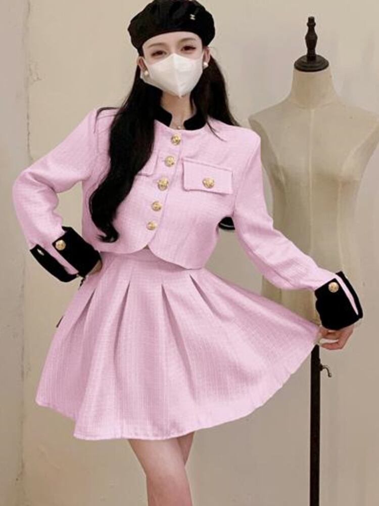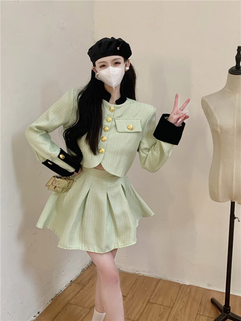 春秋ツーピースセットショートジャケットコート + ミニスカートセット 2 点セット衣装 スプリング 春物 オータム 秋物