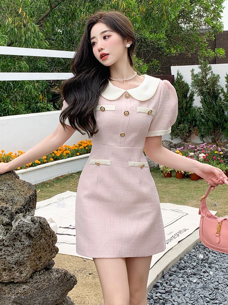 小さなフレグランス ツイード ドレススウィート ミニ サマー ドレス パーティー Vestidos ローブ 大人ガーリー キュート カジュアル 夏物