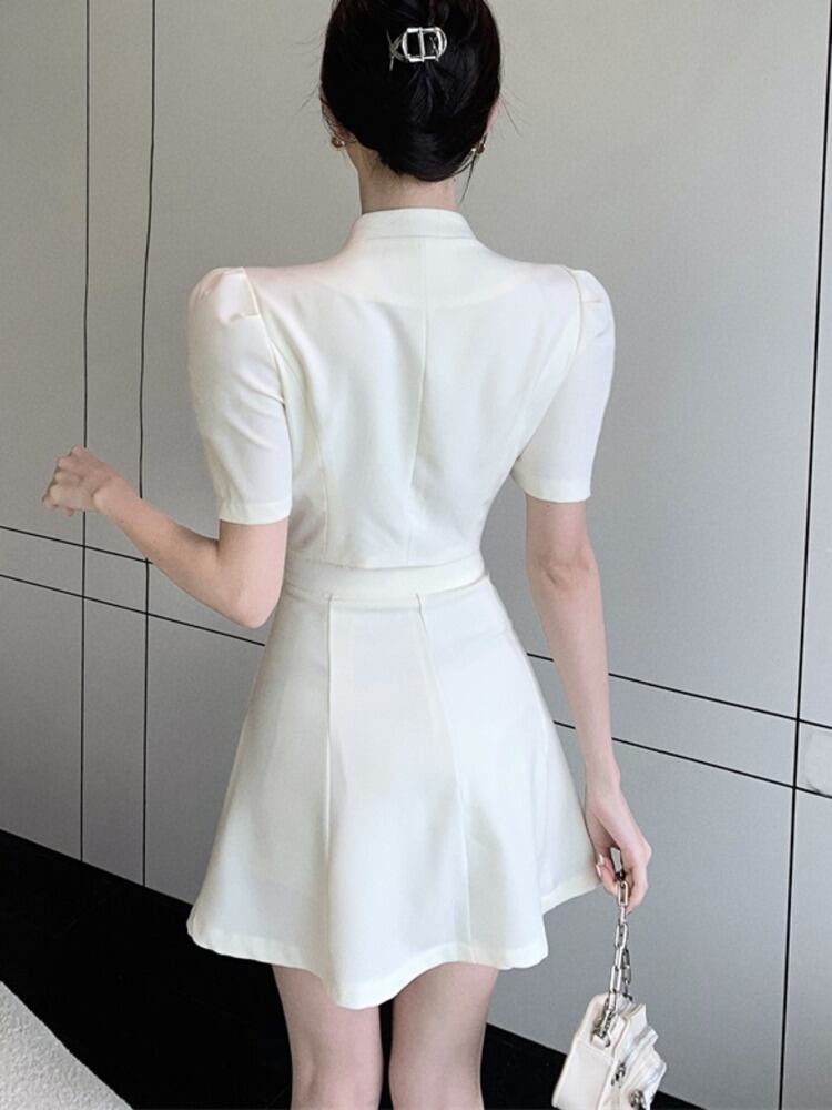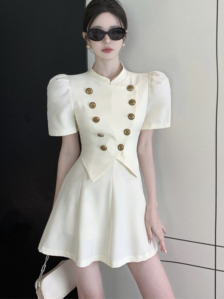 夏フレンチ小さな香り 2 点セット衣装ダブルブレストショートブレザーコート & ウエストスカートセット サマー 夏物