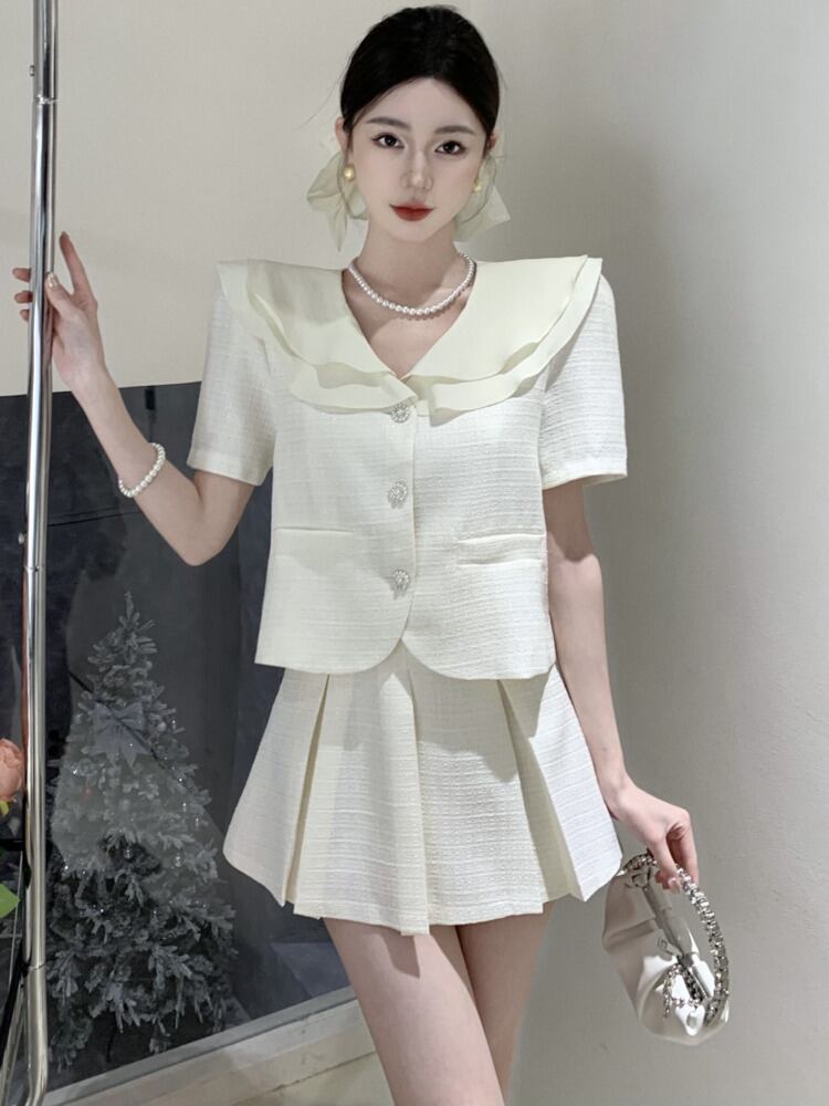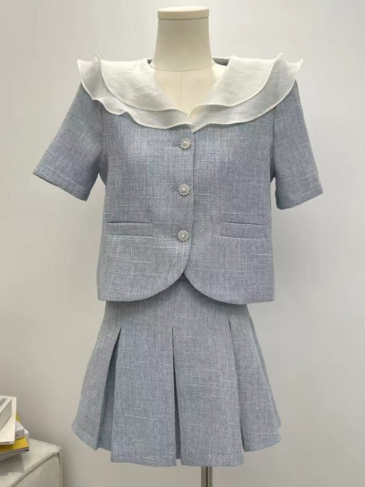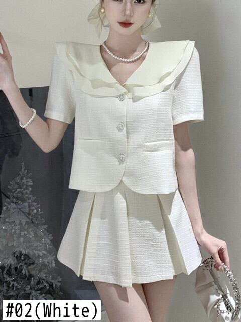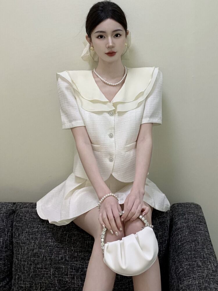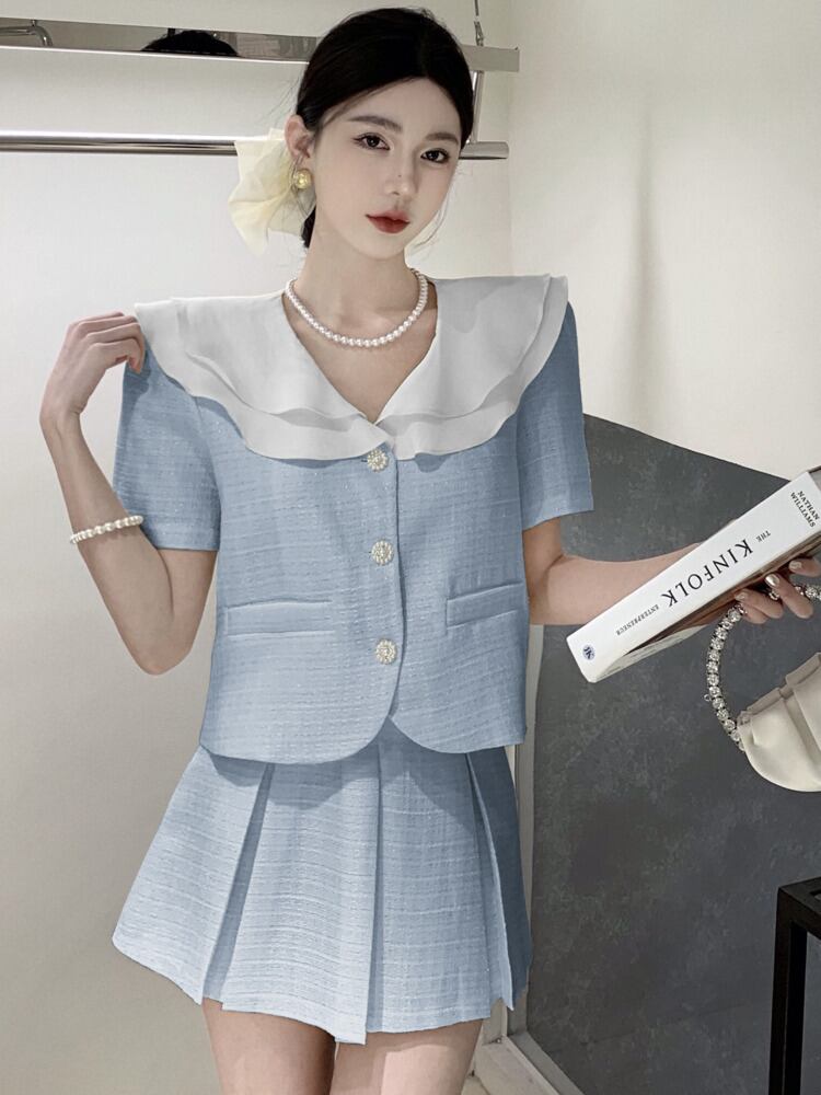 夏ツーピースセットブラウスミニスカートスーツ 2 点セット衣装アンサンブルファムショートセット conjuntos cortos サマー 夏物 フェミニン