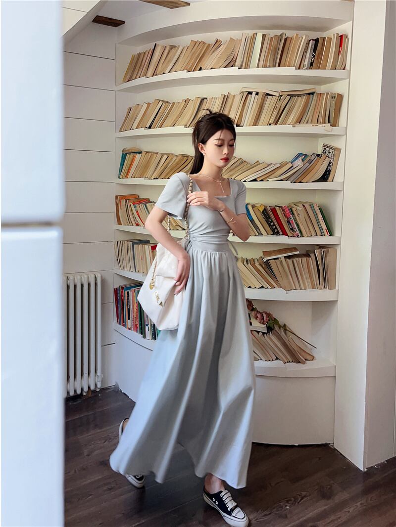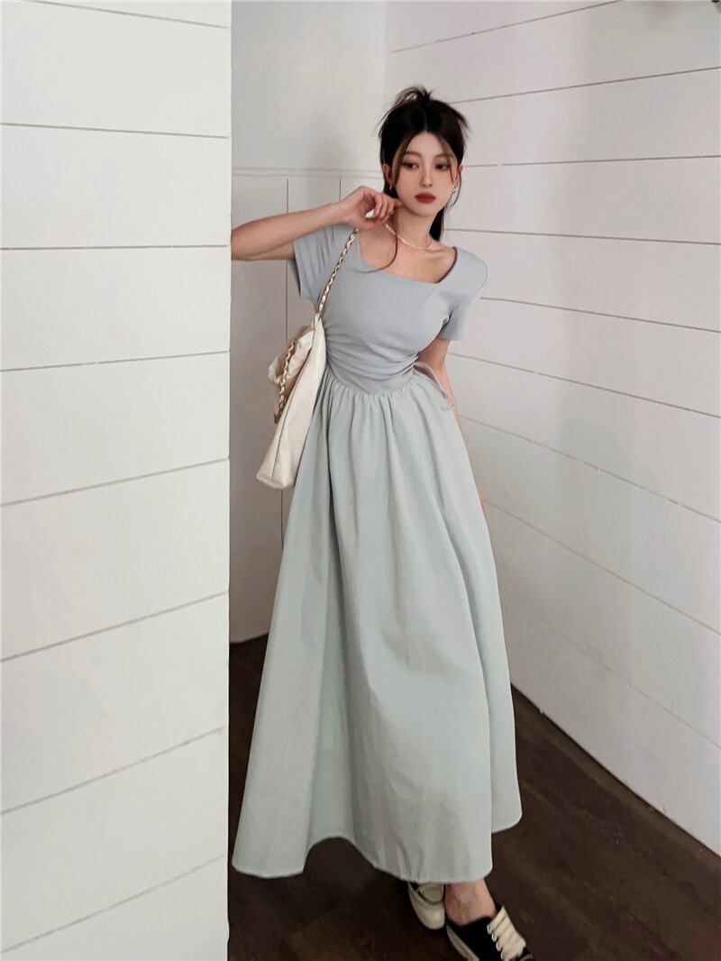 フランスのミニマリズムスリムウエストパッチワークマキシロングドレスの簡単な夏のドレス Vestido Feminino サマー 夏物