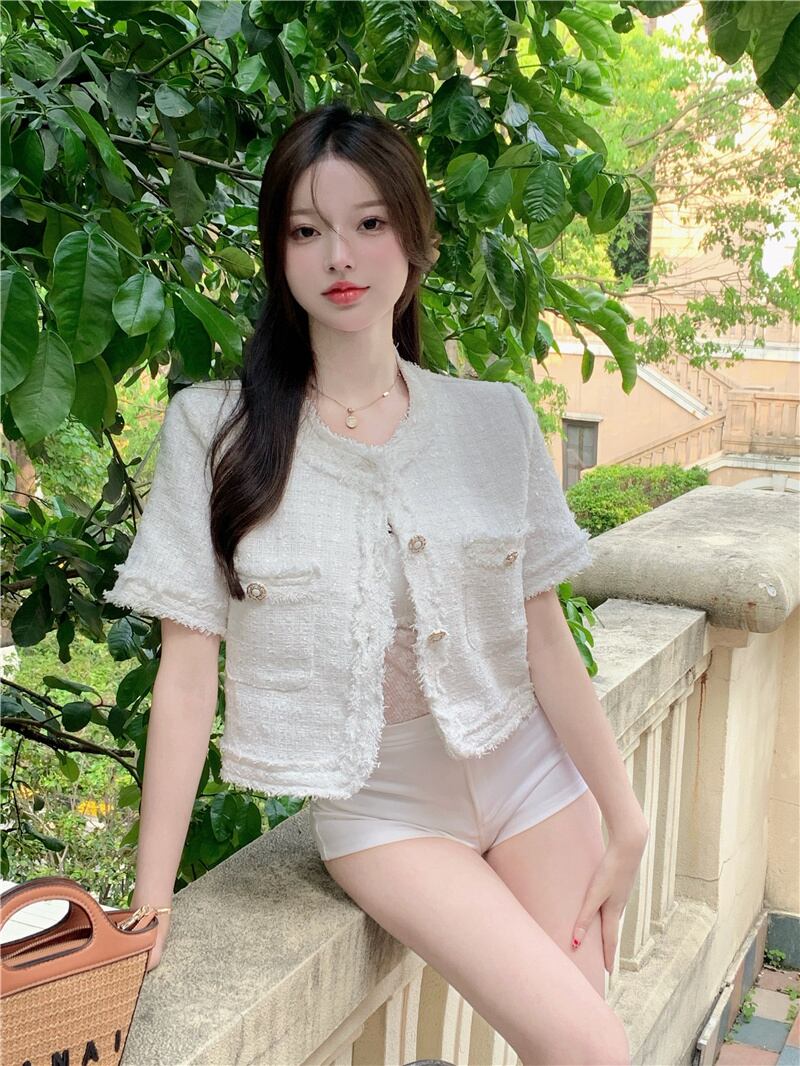夏小さな香りツイード ジャケット コート ストリート フレンチ ショート コート チェック柄上着トップ サマー 夏物