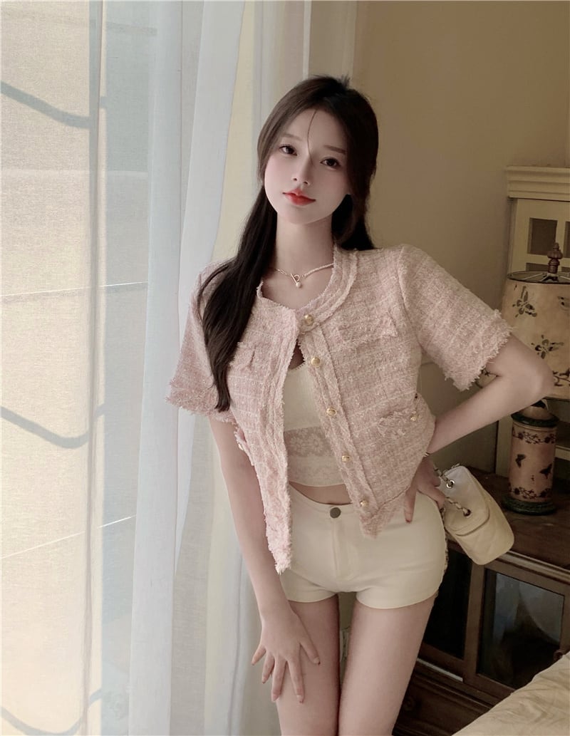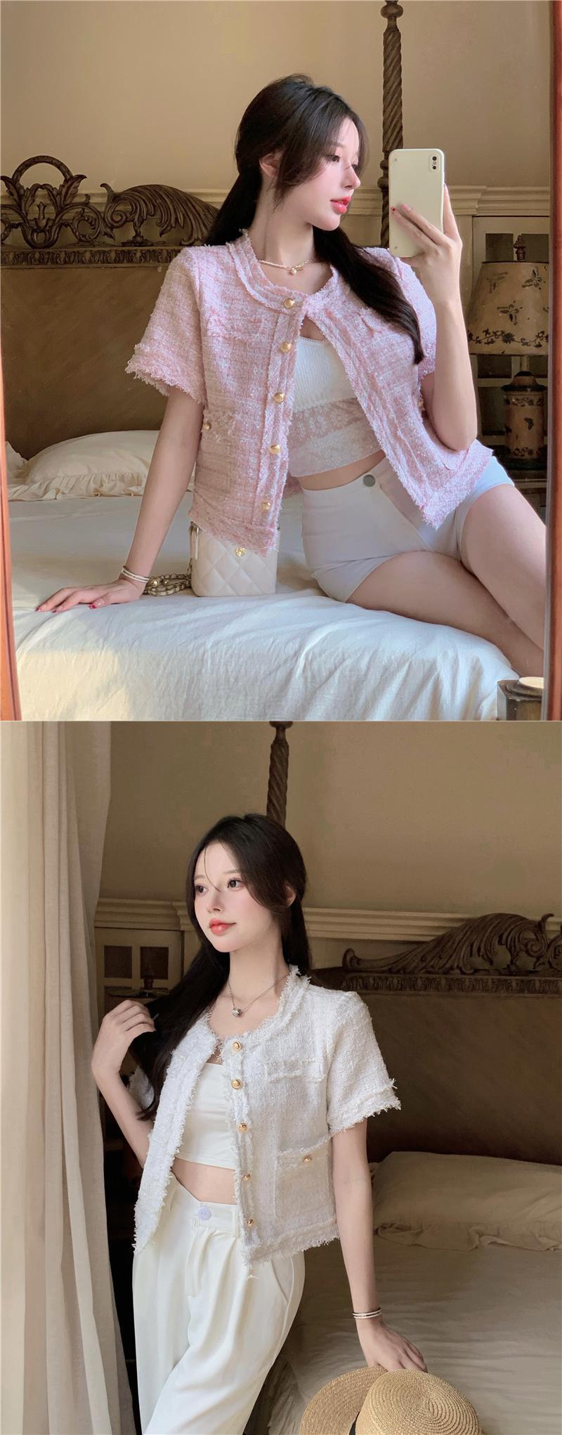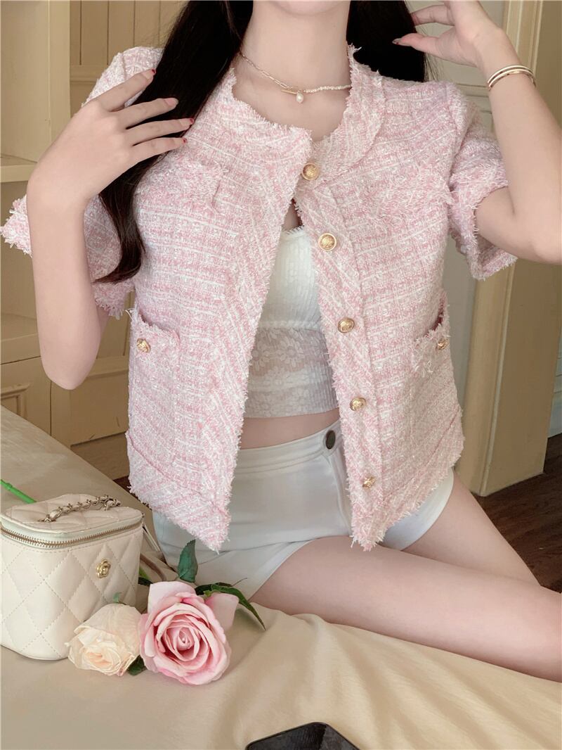 フレンチスモールフレグランスツイードジャケットコートレディースサマーフリードストリートショートコートチェック柄アウター 夏物
