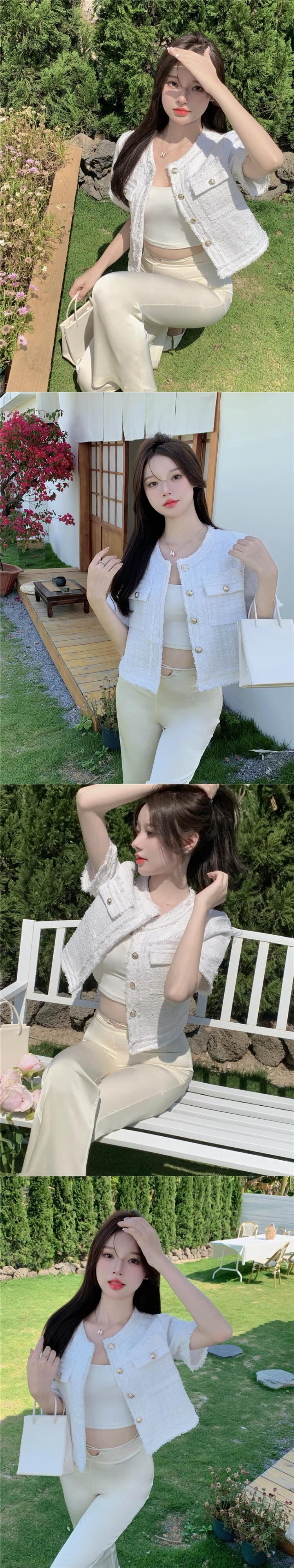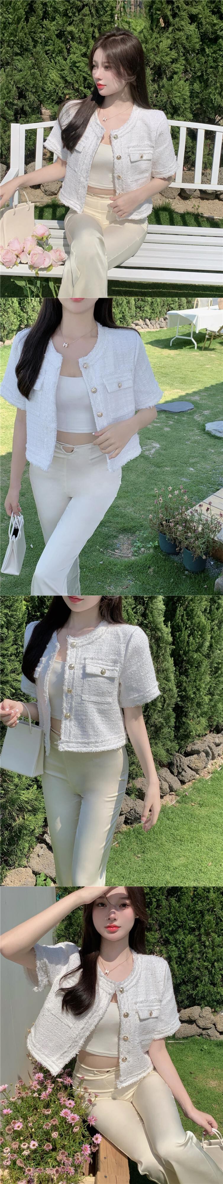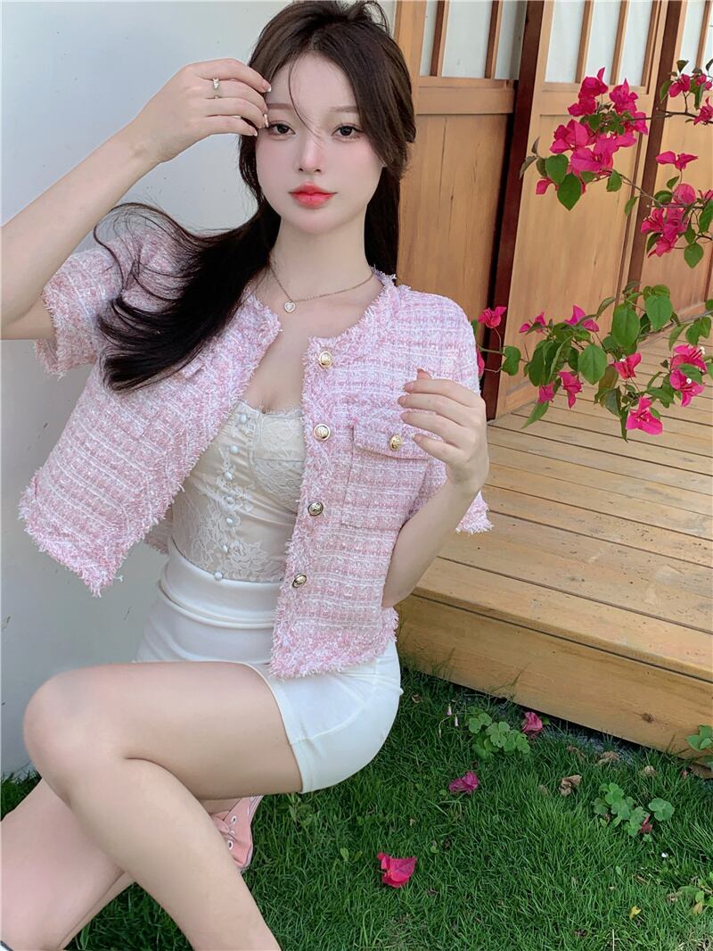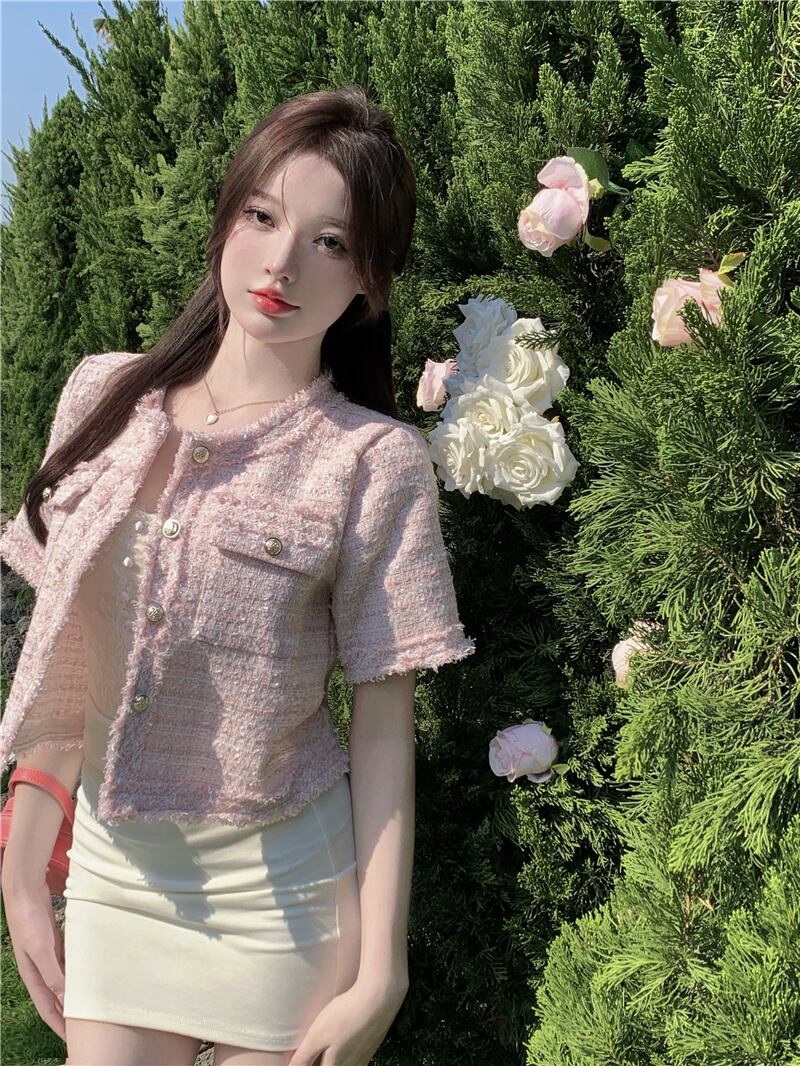 夏小さな香りツイードジャケットコートフレンチショートコート Y2K ストリートアウター サマー 夏物