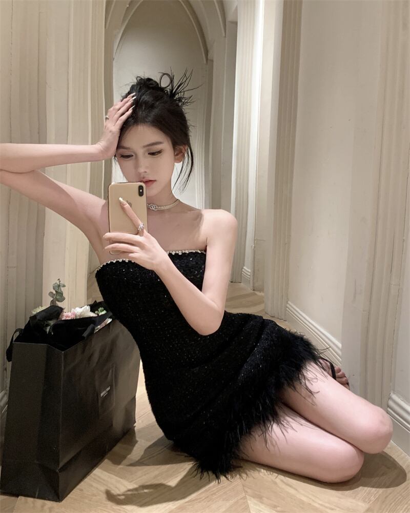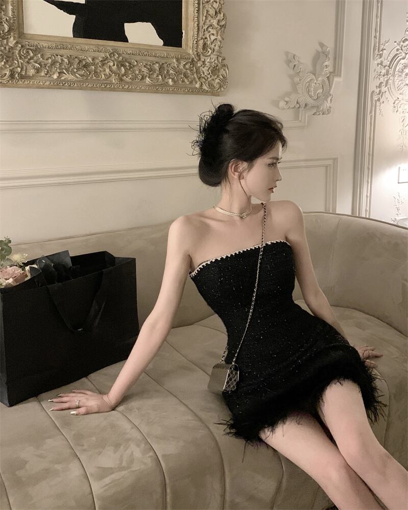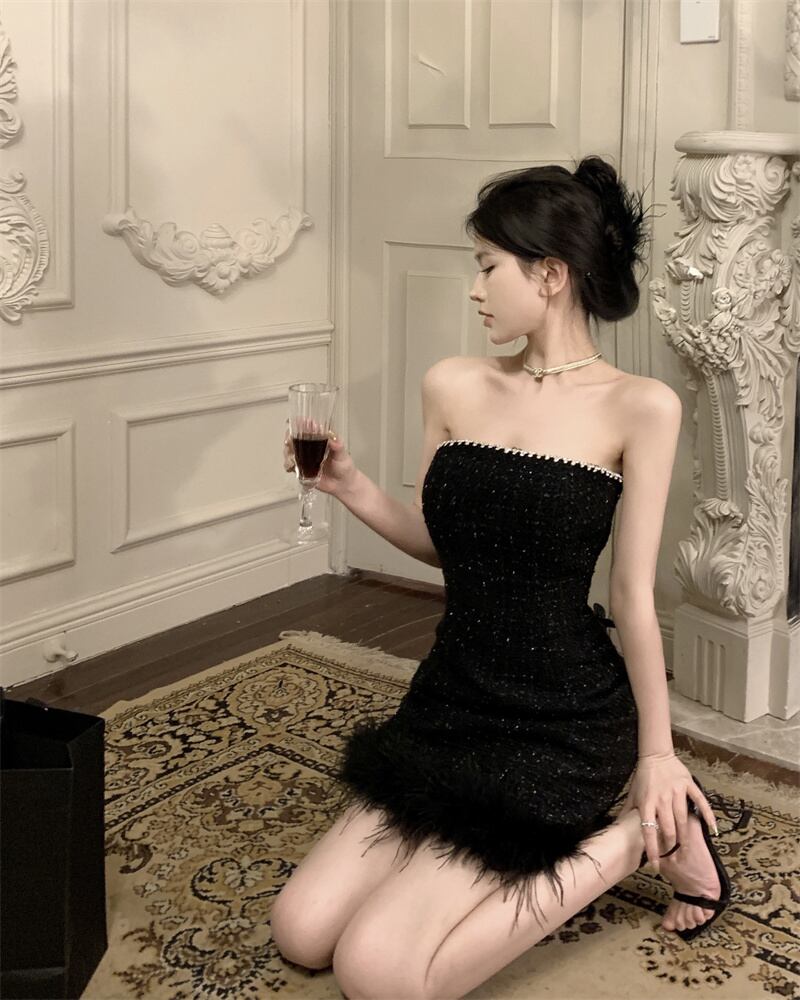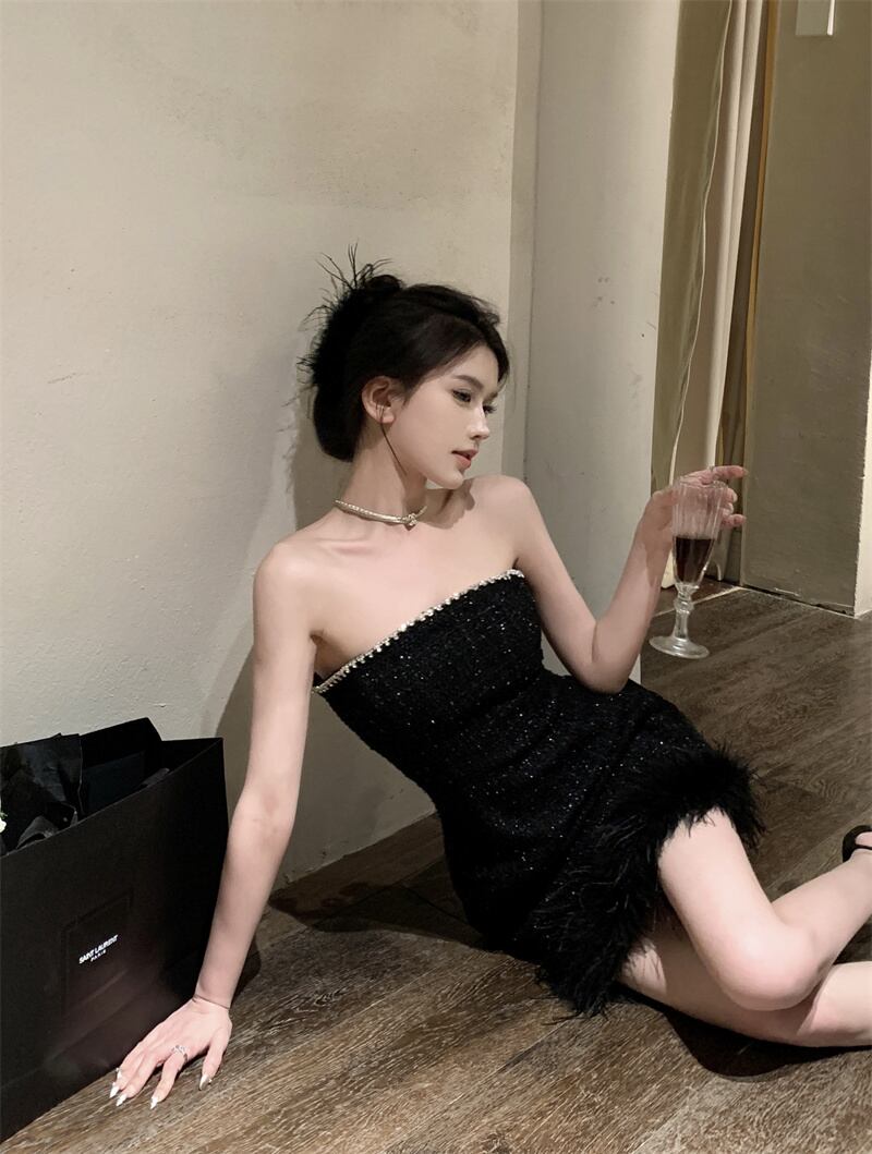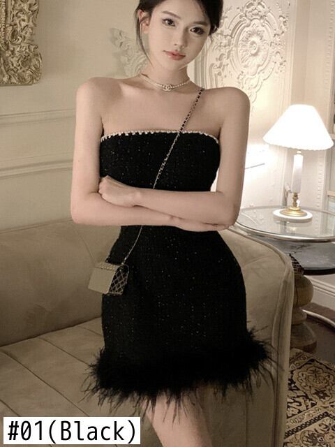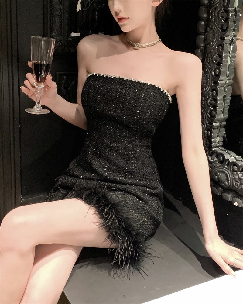 HotSweet セクシークラブストラップレスツイードショートドレス夏高級ダイヤモンド小さな香りイブニングパーティードレス 大人ガーリー スウィート キュート カジュアル サマー 夏物