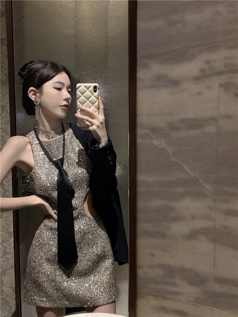 ストリートボディコンミニサマードレス Y2K セクシーな中空アウトパーティードレス Vestido Feminino 夏物