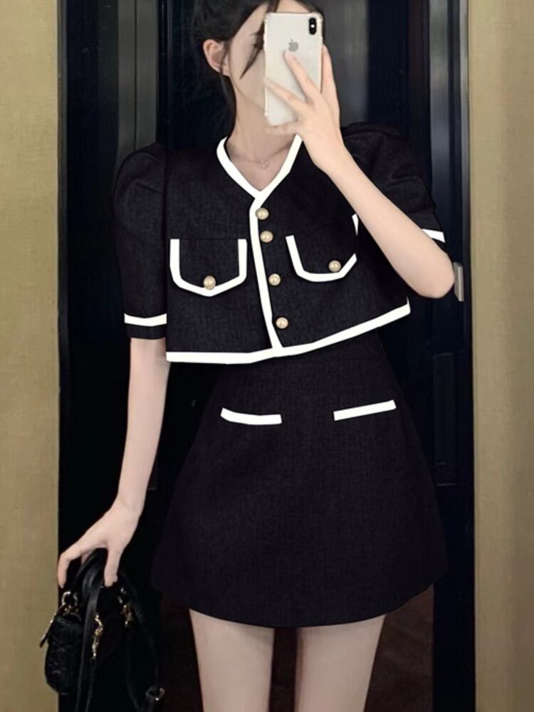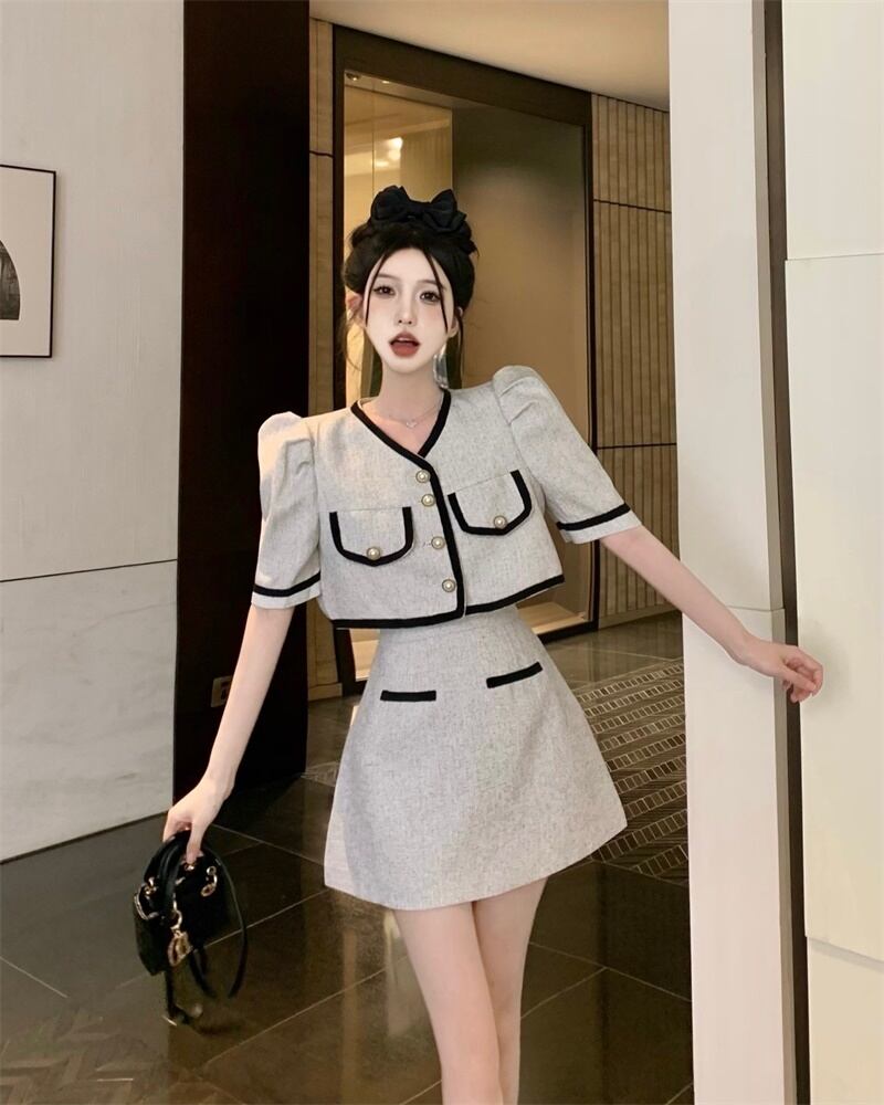 フレンチスモールフレグランス 2 点セット衣装夏ストリートルースクロップトップ + ミニスカート 2 点セット サマー 夏物