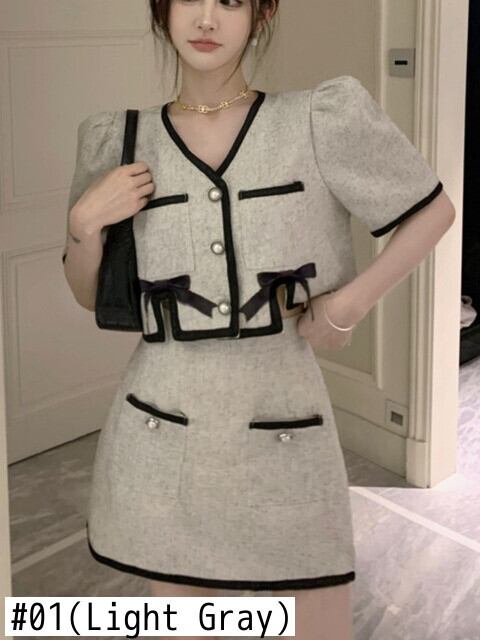 甘い小さ香り 2 点セット衣装夏弓クロップトップ + スカートスーツフレンチ 2 点セット リボン 大人ガーリー スウィート キュート カジュアル サマー 夏物