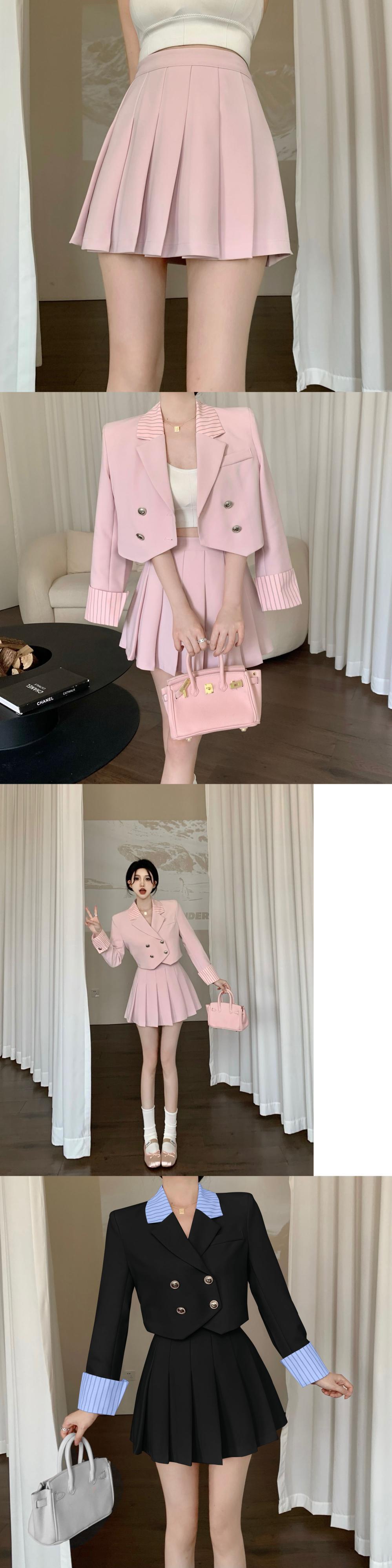 ツーピースセットブレザーコート + プリーツスカートスーツオフィスレディ夏 2 ピースセット衣装 サマー 夏物 会社 学校 通勤や通学にも
