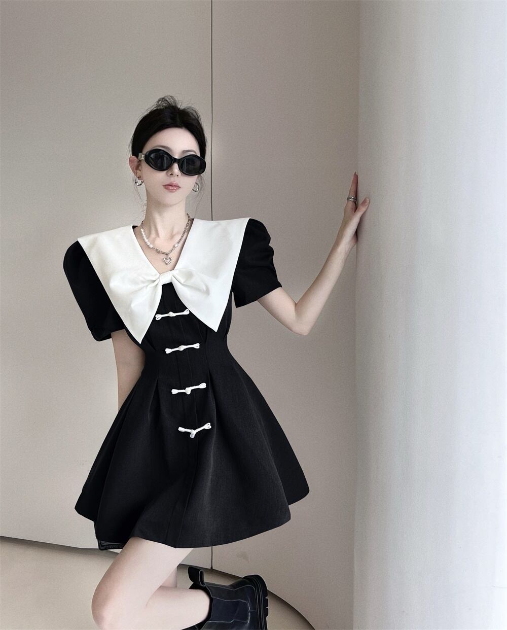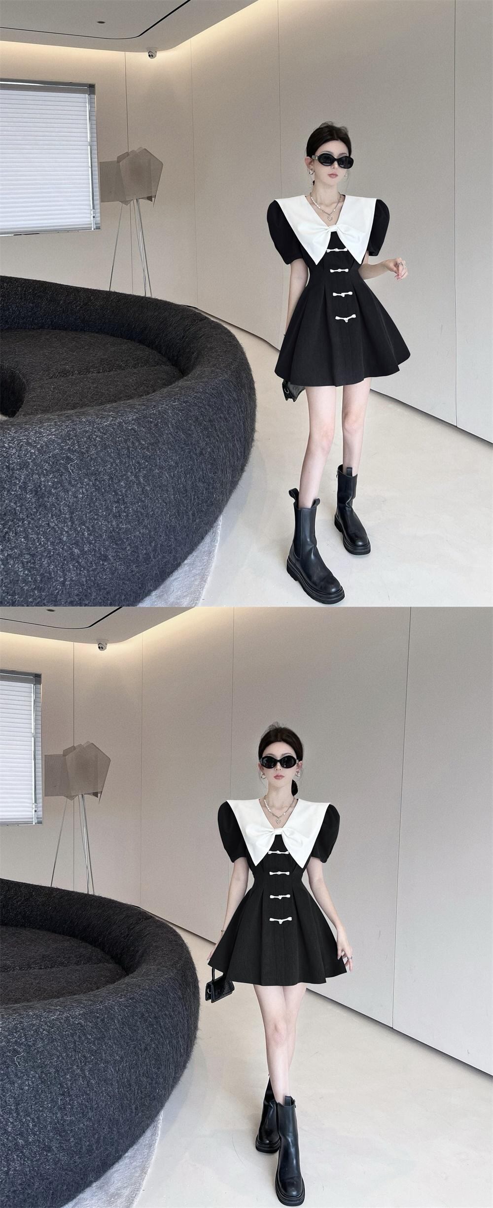 フレンチショートドレスOL半袖スリムサマードレスパーティーVestido Femininoローブ ハーフスリーブ 夏物