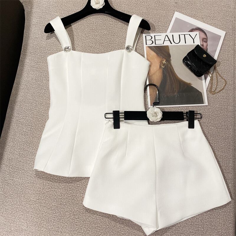 夏ショートセットセクシー背中開いたキャミソールショーツパンツツーピースセット conjuntos cortos 2 ピースセット衣装 サマー 夏物 ブルマー
