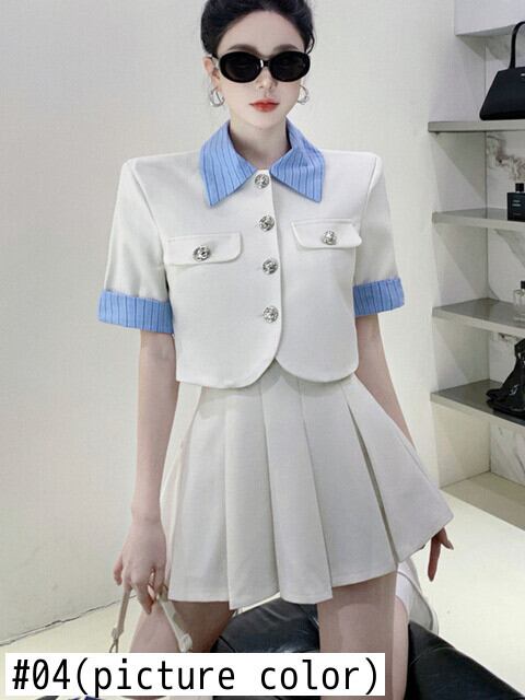 小さフレグランス 2 点セットブレザー コート トップ + プリーツ スカート スーツ OL 2 点セット衣装