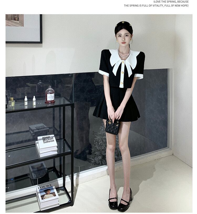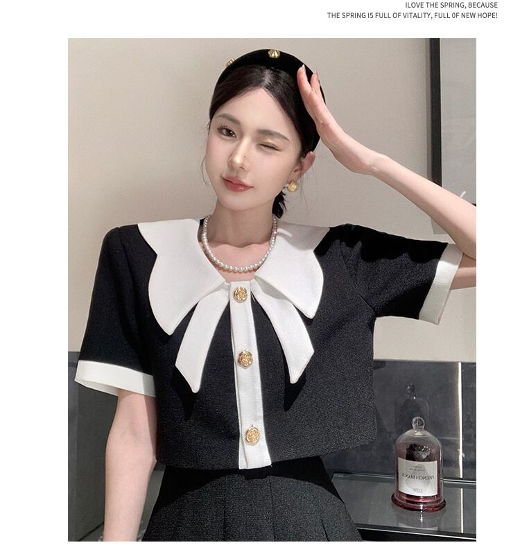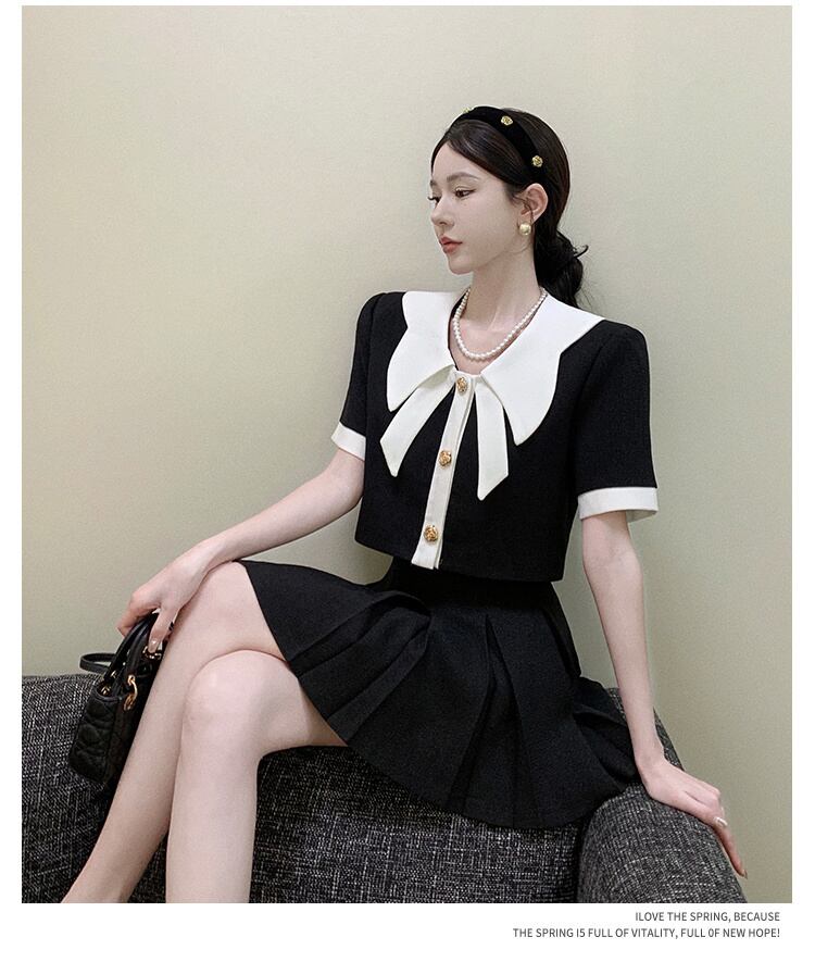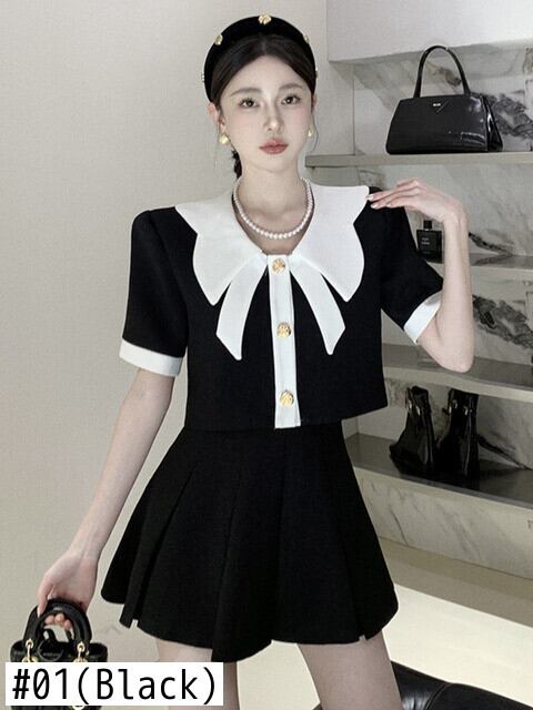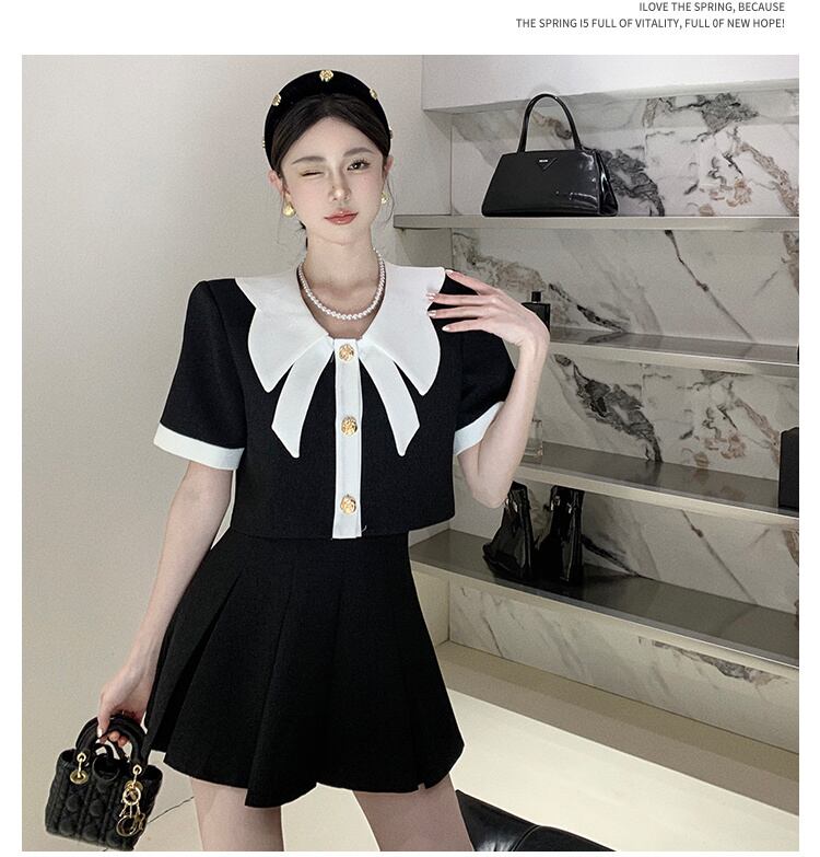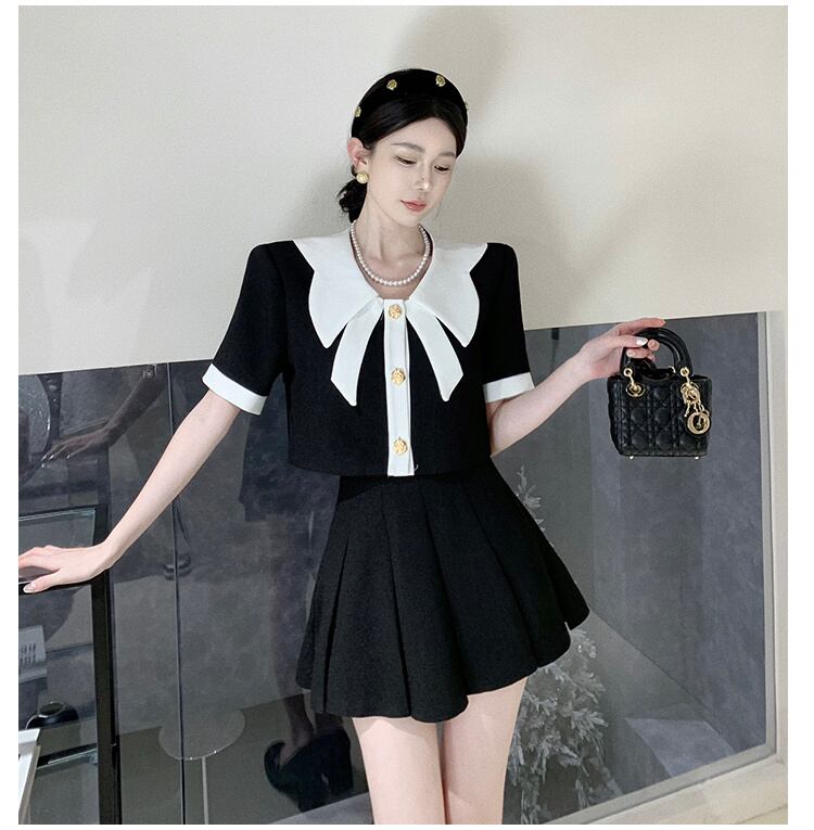 夏甘いツーピースセットショートコートクロップトップ + プリーツスカートスーツ 2 ピース衣装 大人ガーリー スウィート キュート カジュアル サマー 夏物