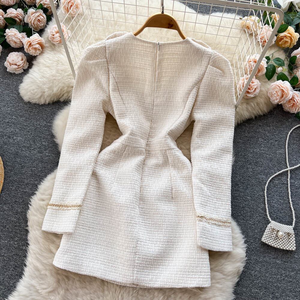フランス高級小さ香りスリム パーティー ドレスウール ツイード ドレス Vestidos ローブ