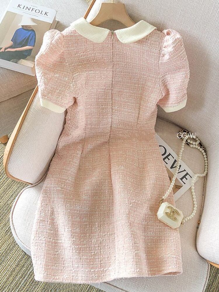 小さ香りツイードドレス夏甘いショートドレスパーティー Vestidos ローブ 大人ガーリー スウィート キュート カジュアル サマー 夏物
