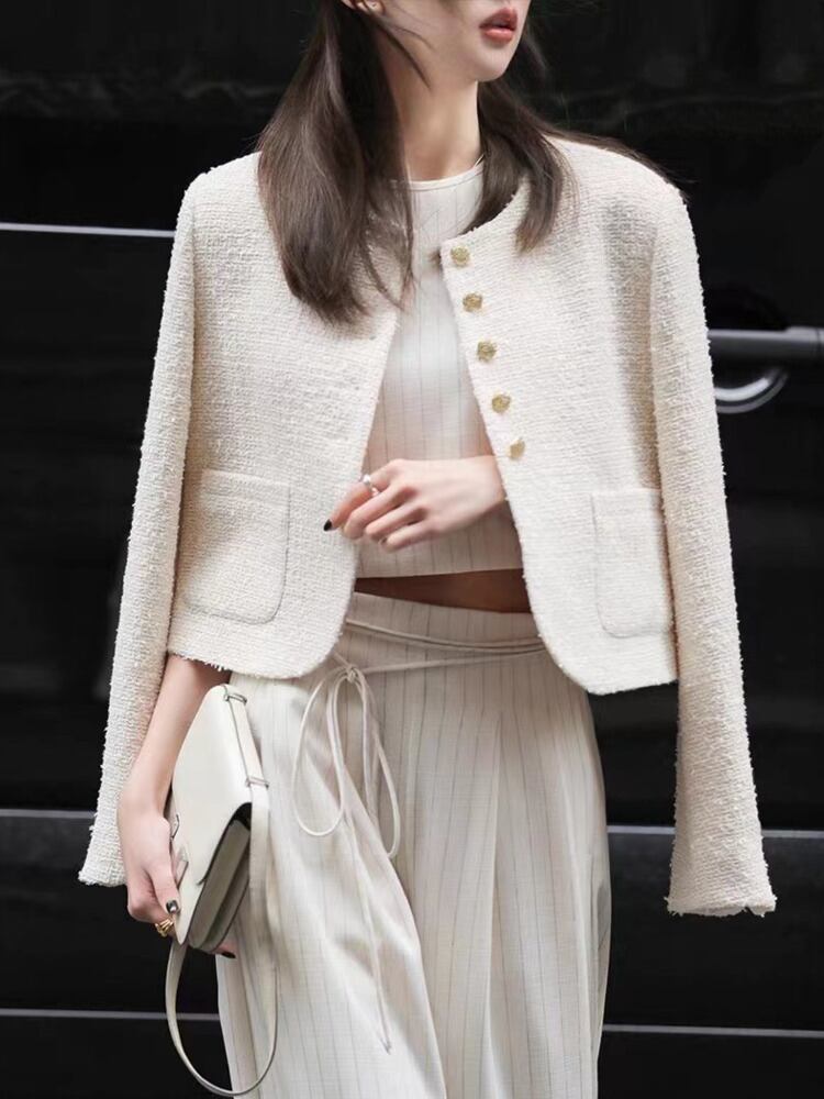 フランス高級ツイード ジャケットウール ショート コート アウターウェア Casaco Chaqueta