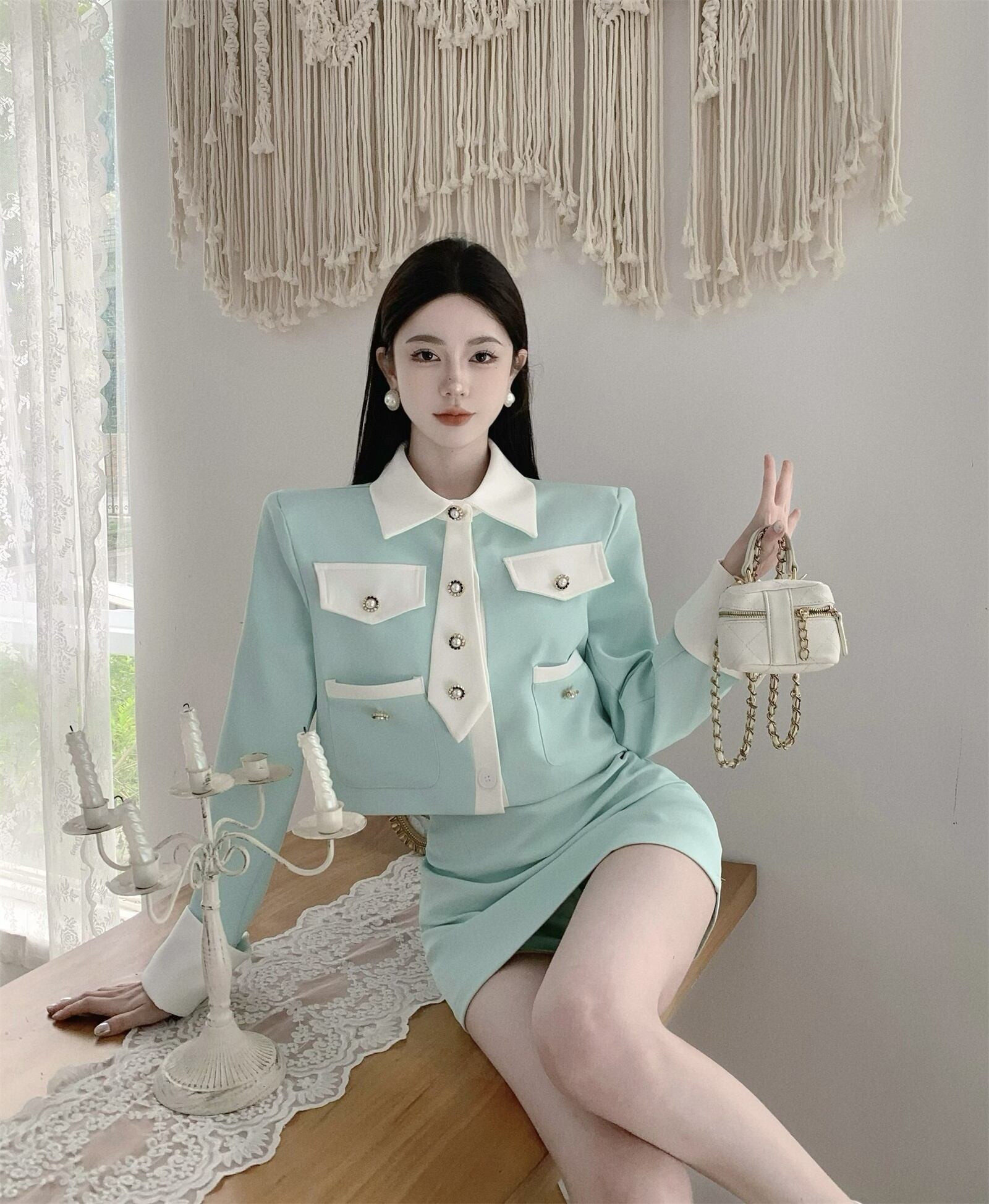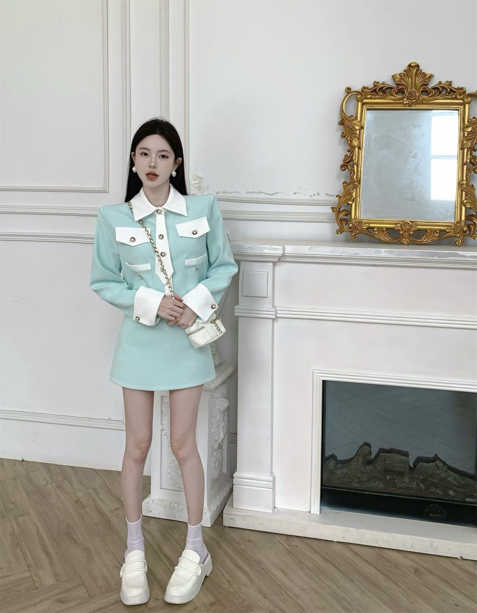 小さフレグランス 2 点セットネクタイ ショート コート + ウエスト スカート セット夏 2 ピース衣装 サマー 夏物