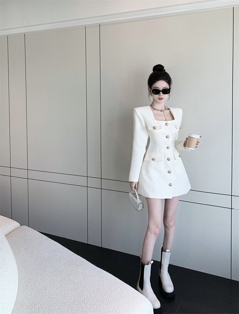 フランスショートドレス OL 長袖シングルブレストスリムドレスパーティー Vestido Feminino ローブ ロング