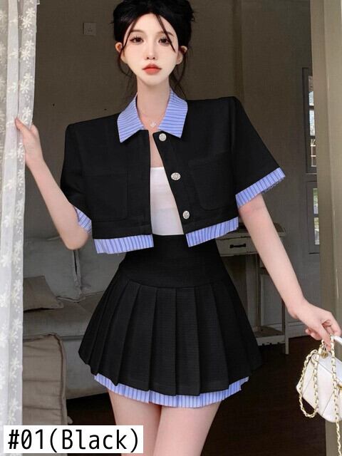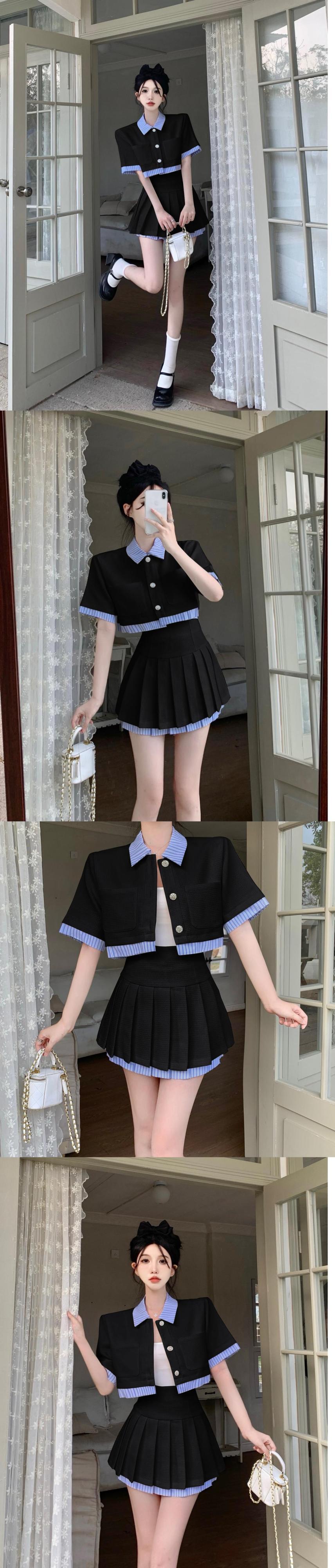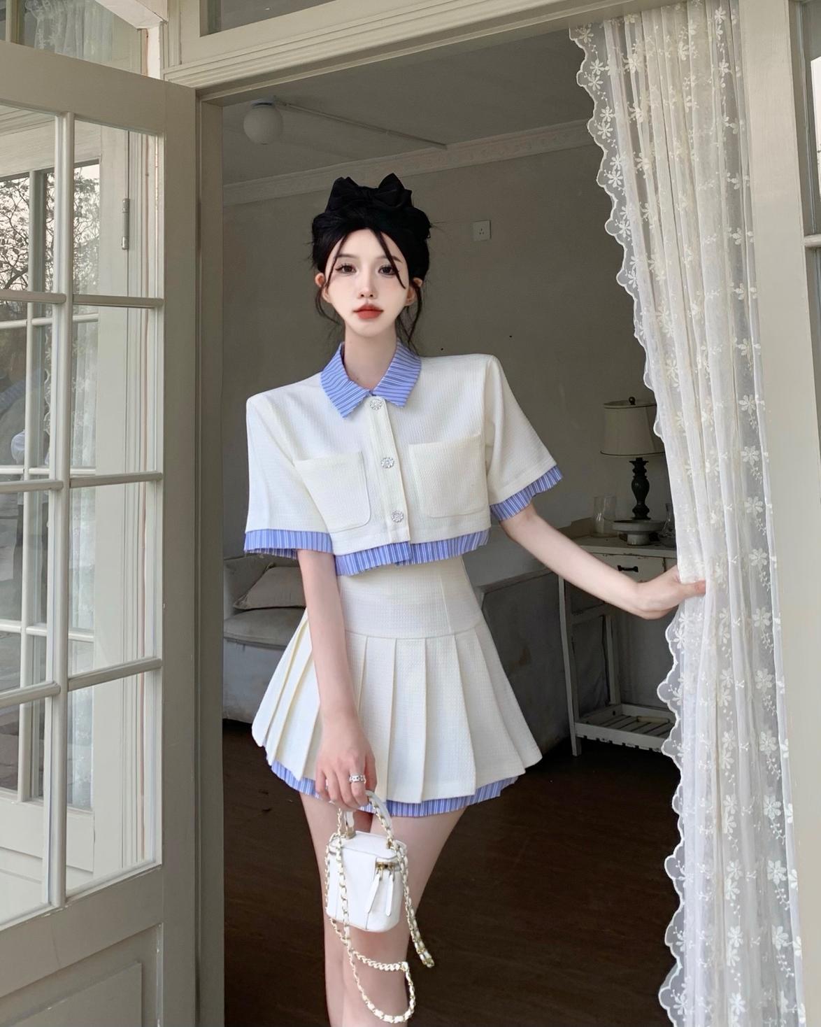 ストリートスモールフレグランス 2 点セット衣装フレンチスウィートショートジャケットコート + ウエストプリーツスカート 2 点セット 大人ガーリー キュート カジュアル