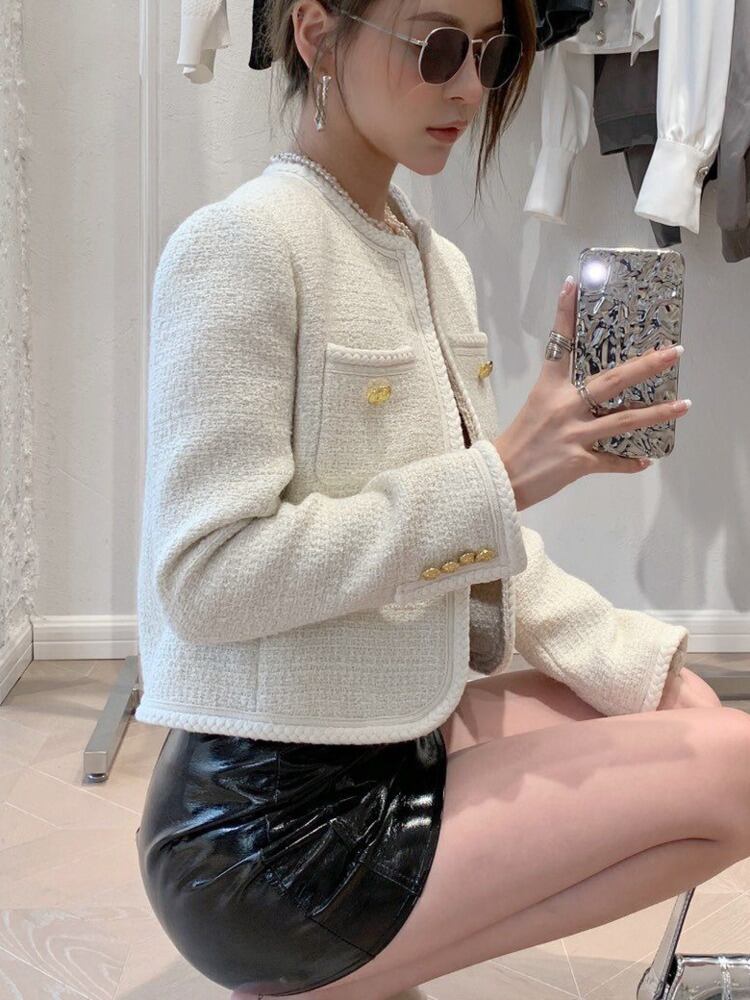 秋冬フレンチスウィートツイードジャケット高級ウールショートコート生き抜く Casacos chaqueta mujer 大人ガーリー キュート カジュアル オータム 秋物 ウィンター 冬物