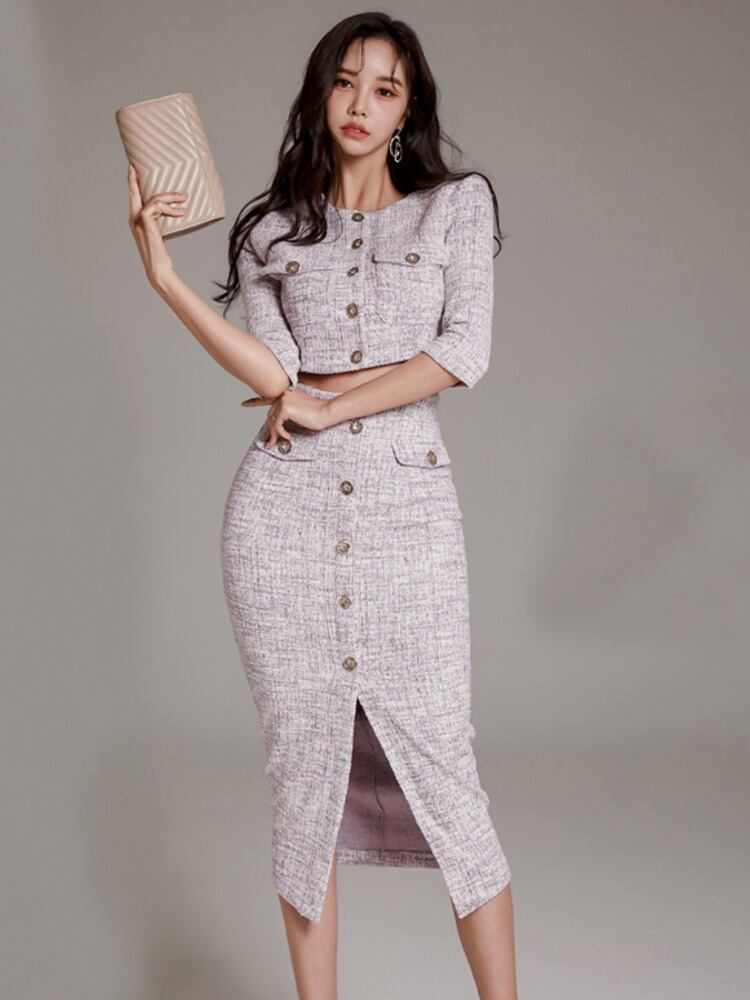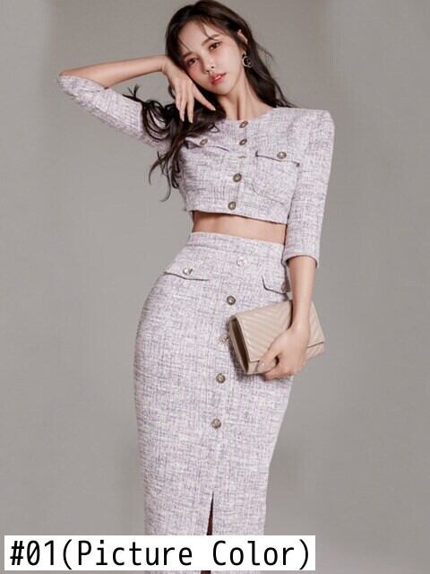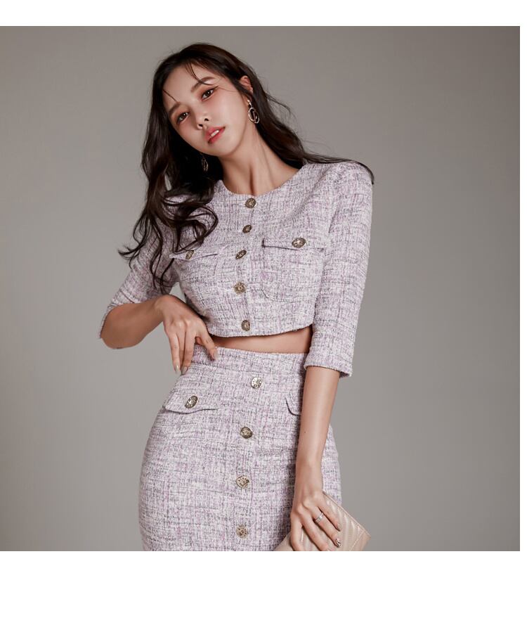 小さフレグランス ツイード ツー ピース セットショート ジャケット コート + スカート スーツ OL 2 ピース衣装