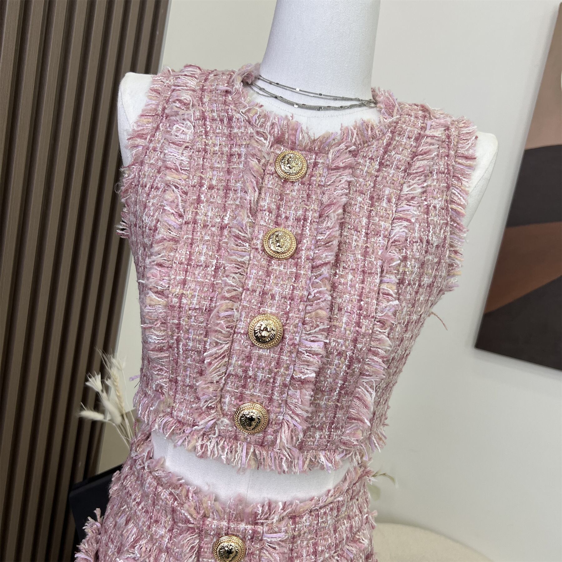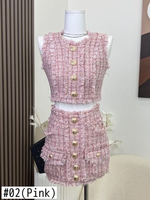 フランス小さ香りツイード 2 点セット Y2K ストリート タンクトップ + スカート セット甘い 2 ピース スーツ 大人ガーリー スウィート キュート カジュアル