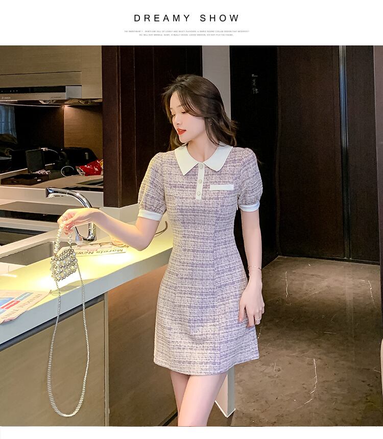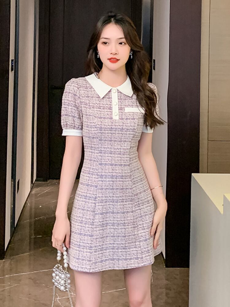 フレンチスモールフレグランスツイードショートドレススウィートサマードレス Vestido Feminino 大人ガーリー キュート カジュアル 夏物