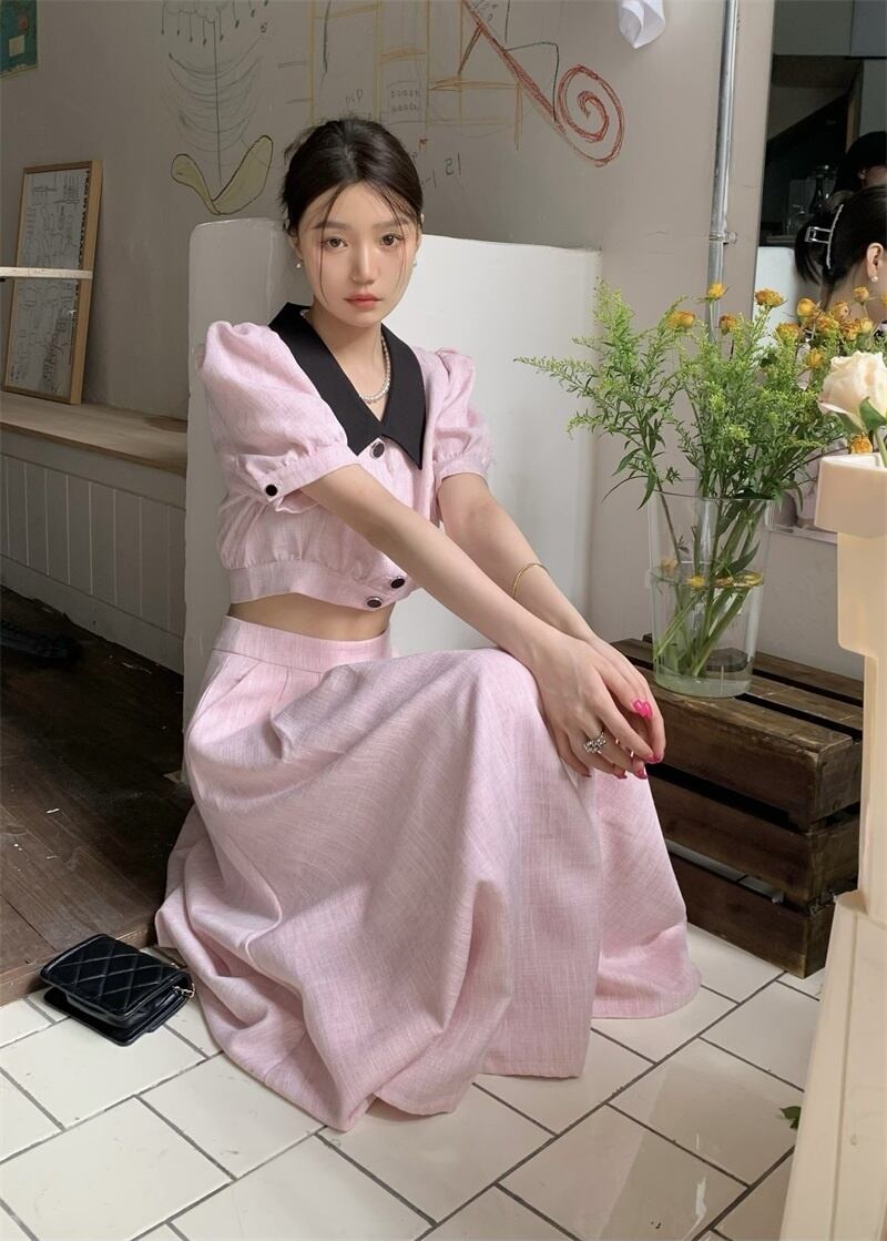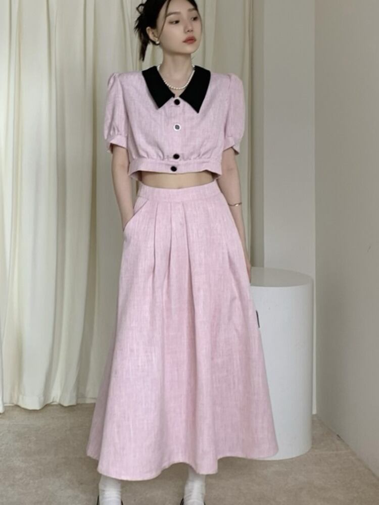 小さフレグランス 2 点セットショート ジャケット コート + ロング スカート スーツ甘い夏 2 点セット 大人ガーリー スウィート キュート カジュアル サマー 夏物