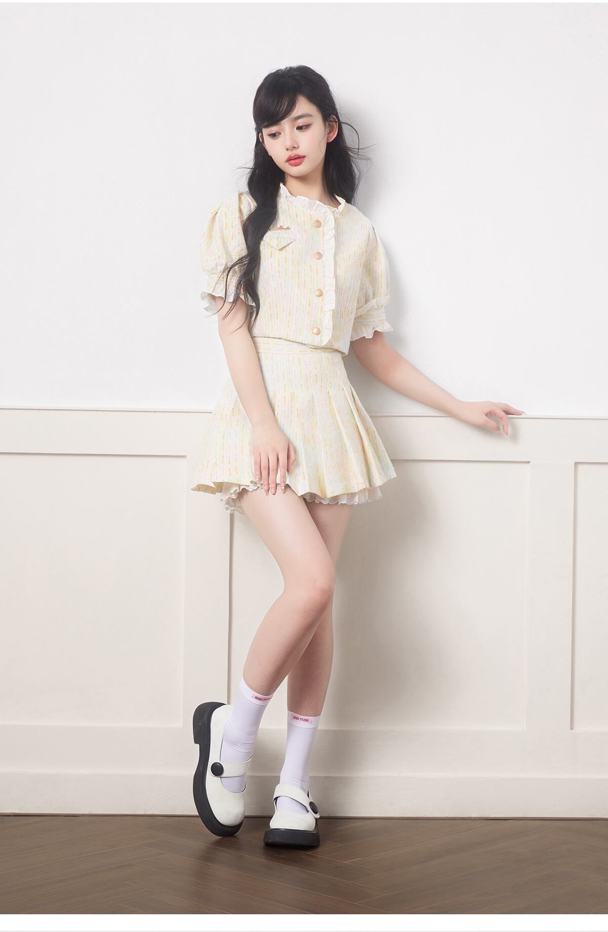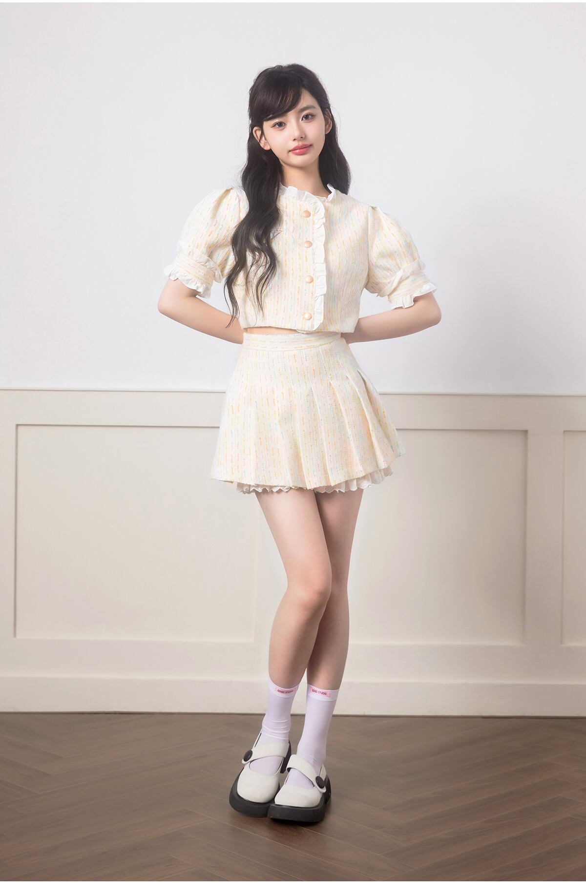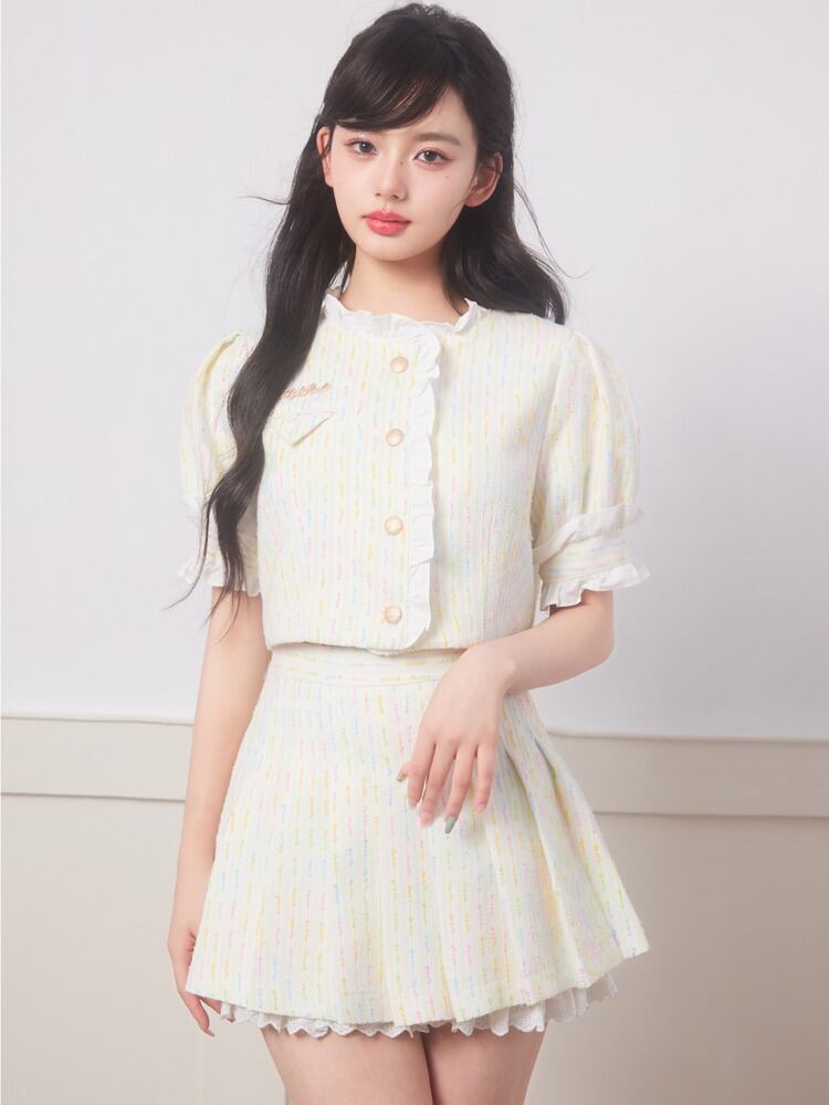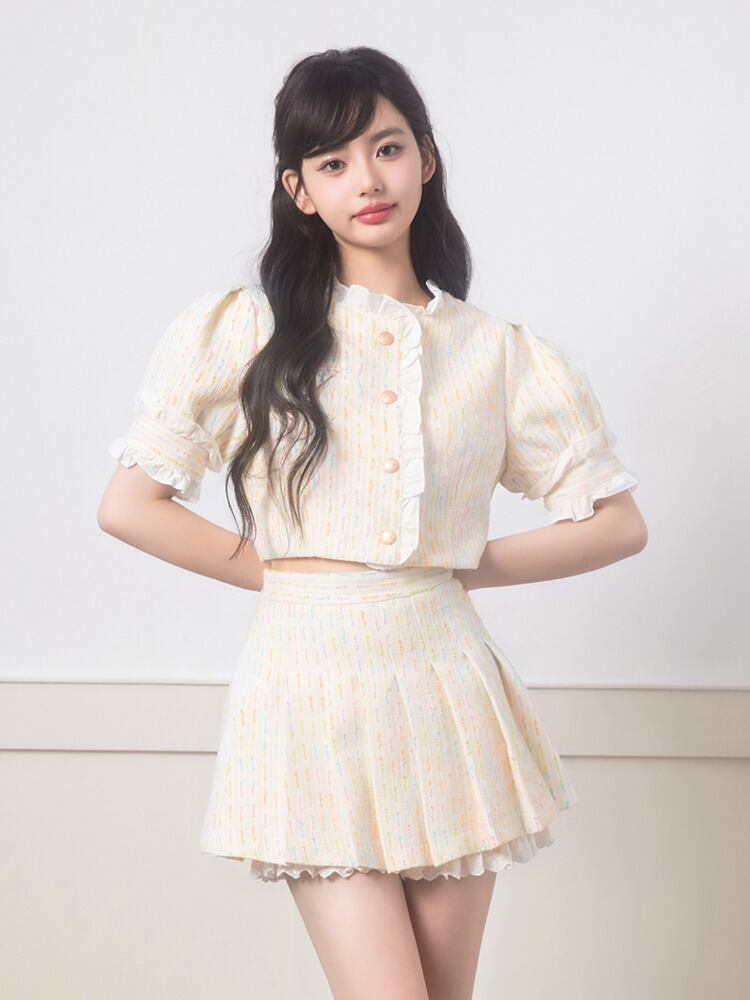ストリートフレンチスモールフレグランスツーピースセットクロップトップ + プリーツスカートスーツガールスウィート 2 ピース衣装 大人ガーリー キュート カジュアル