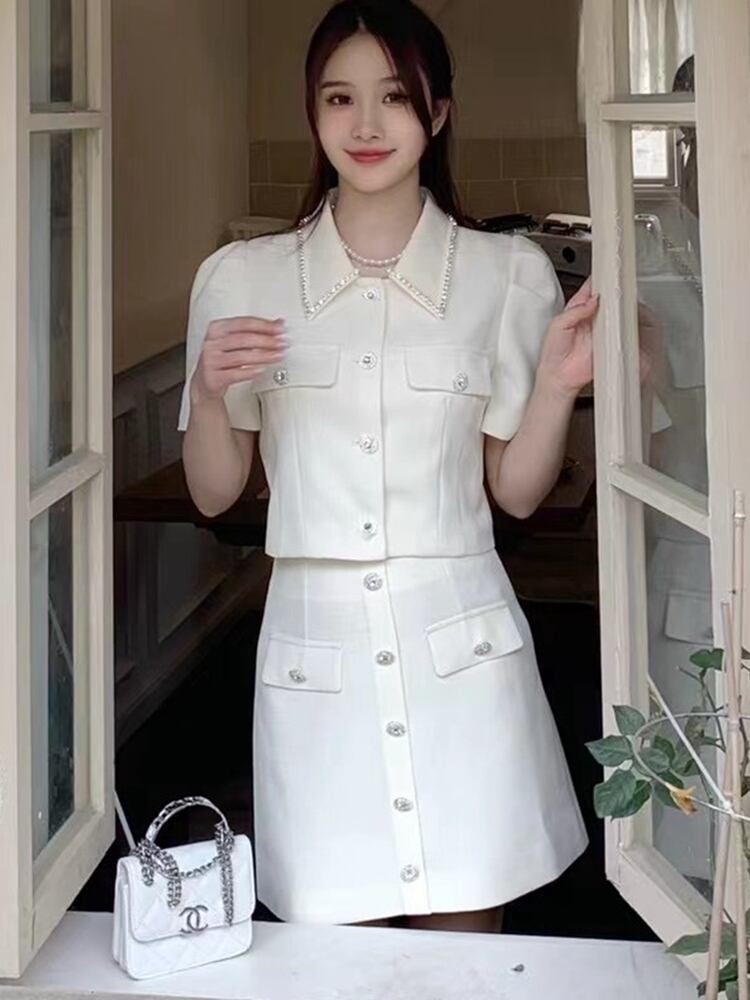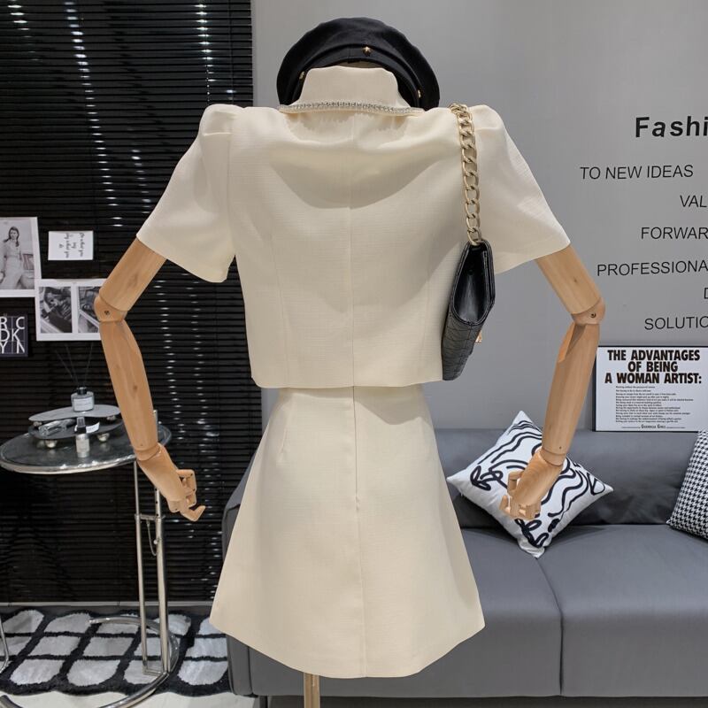 甘いツーピースセットジャケットコートクロップトップ + スカートセットストリート高級夏小さ香り 2 ピース衣装 大人ガーリー スウィート キュート カジュアル サマー 夏物