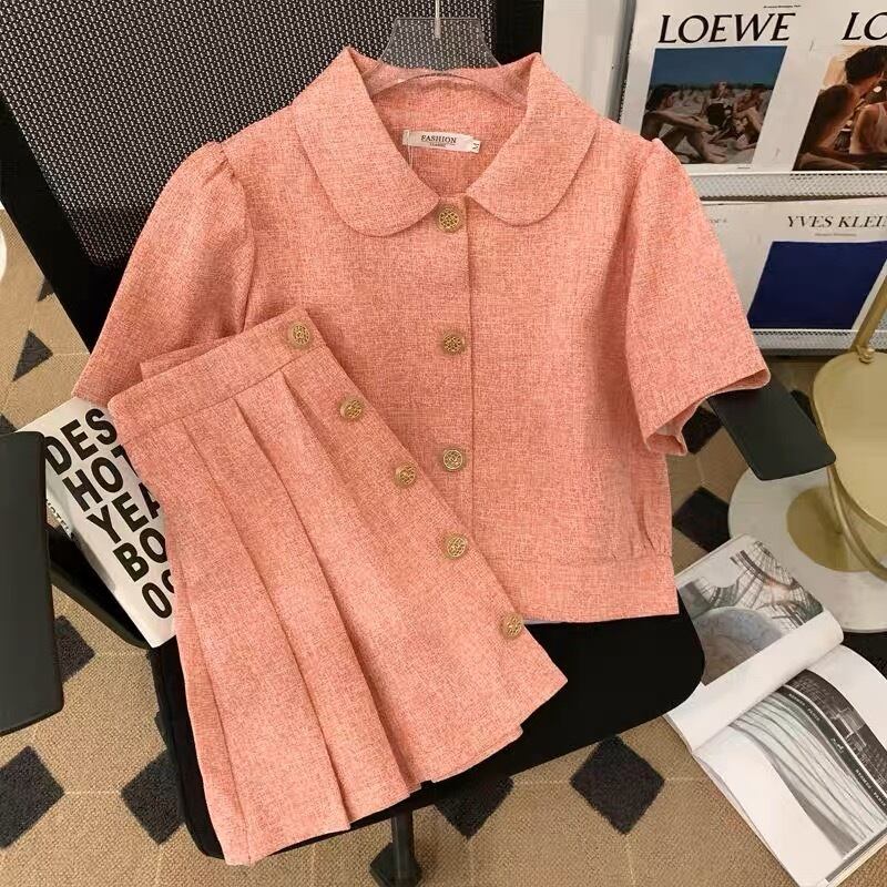 フレンチスモールフレグランスツーピースセットレディースジャケットコート+プリーツスカートスーツ甘夏2ピーススカートセット 大人ガーリー スウィート キュート カジュアル サマー 夏物