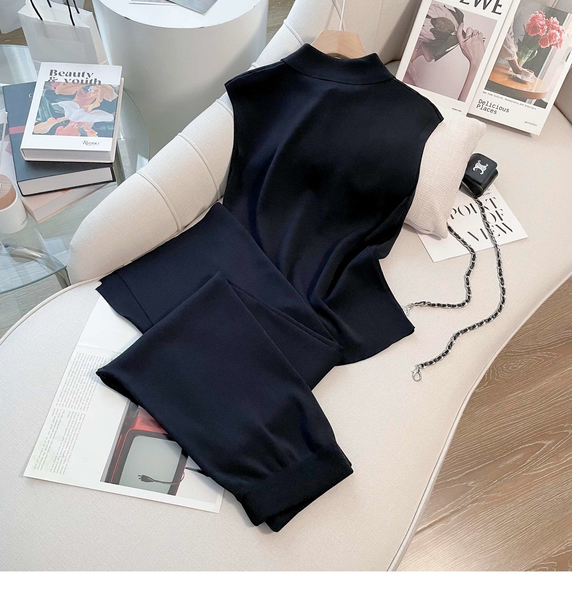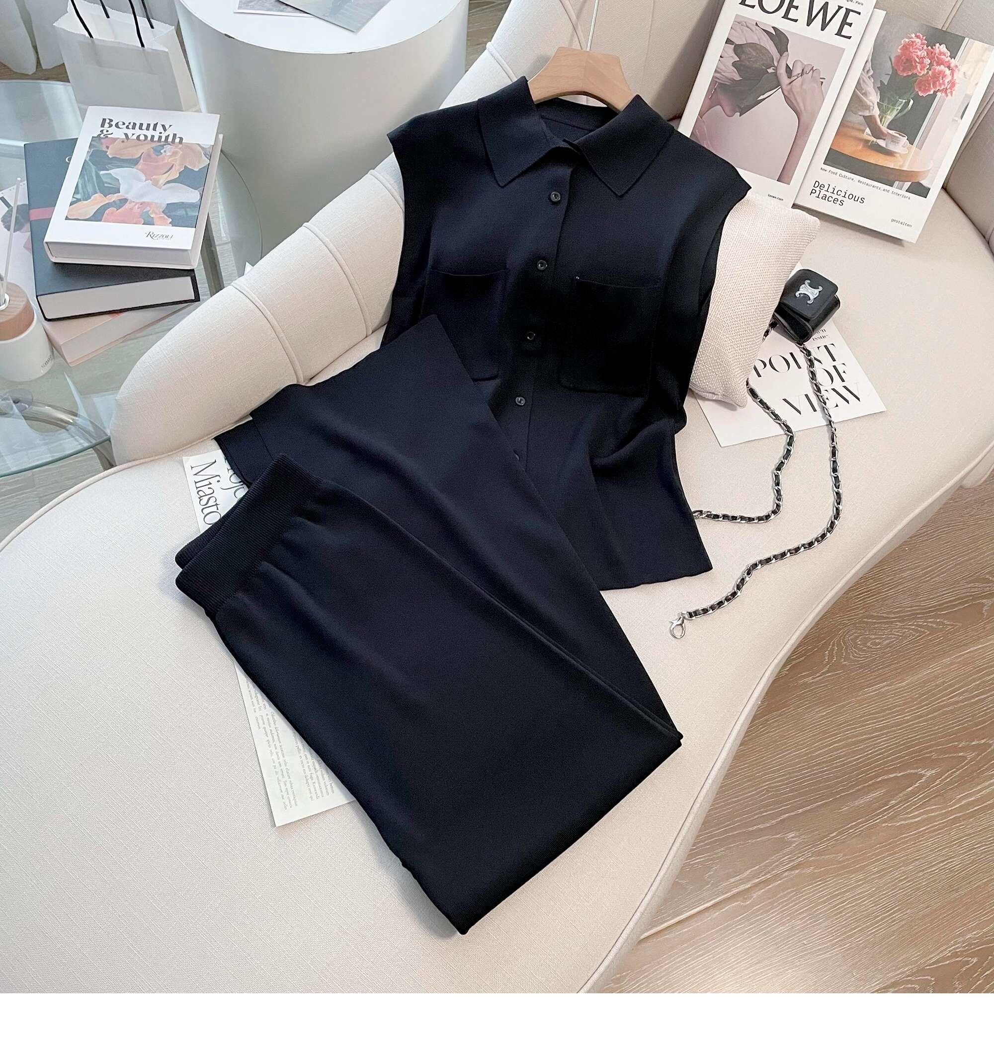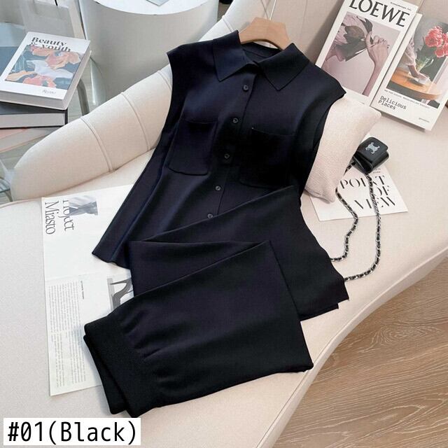 シンプルニット 2 ピースパンツセットセーターカーディガントップ + ワイドレッグパンツスーツ Clic 夏トラックスーツ 2 点セット サマー 夏物 ワイドパンツ