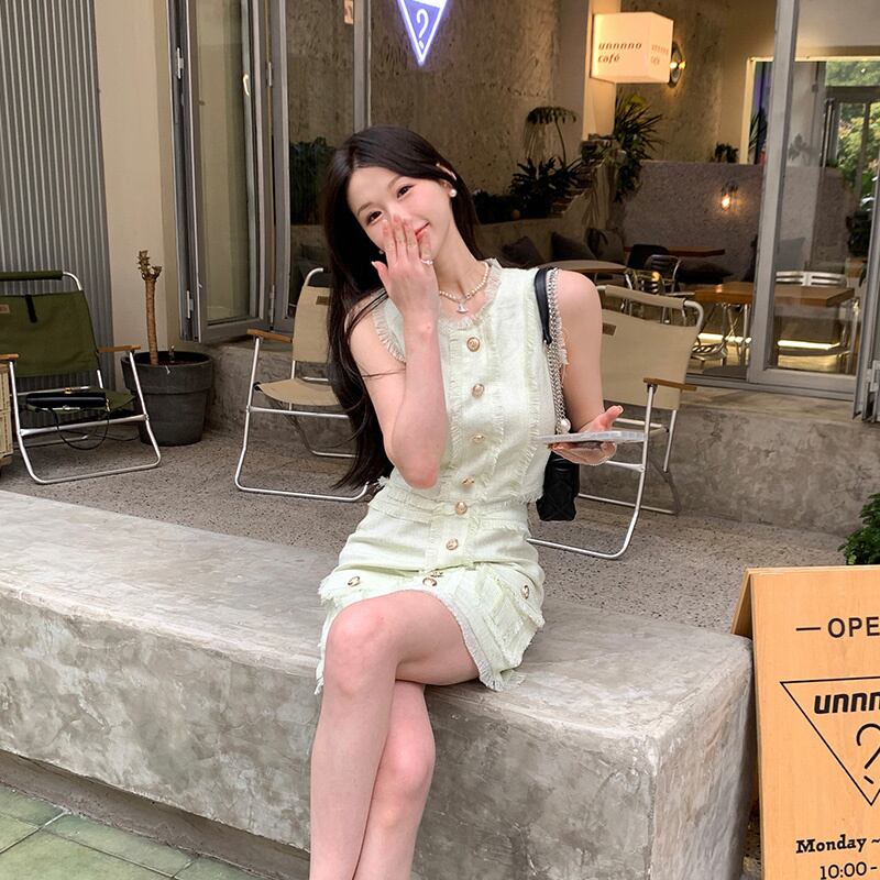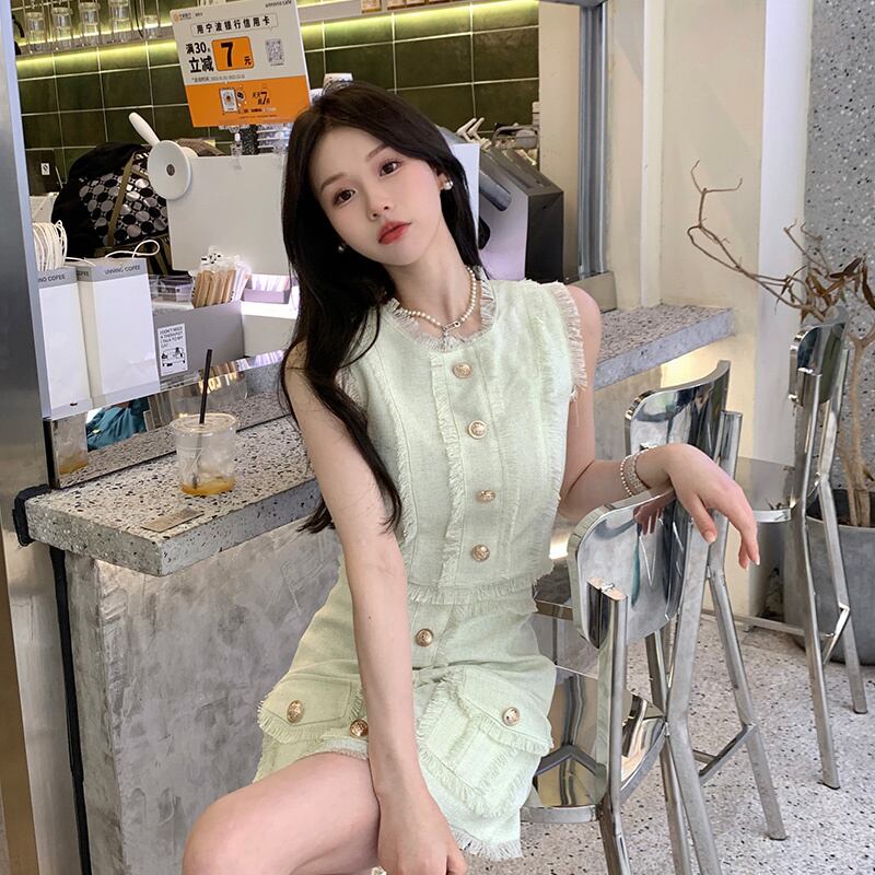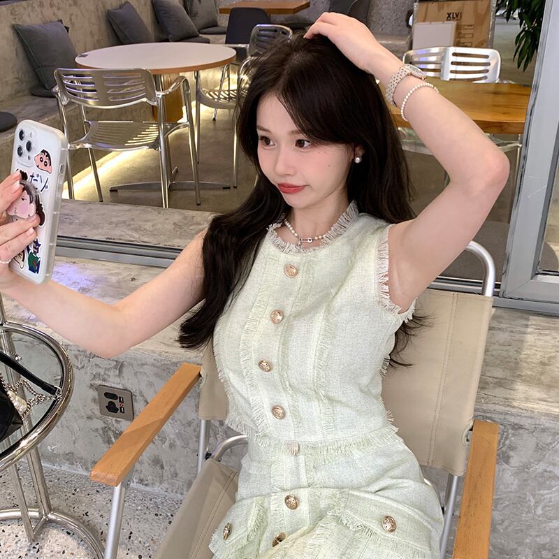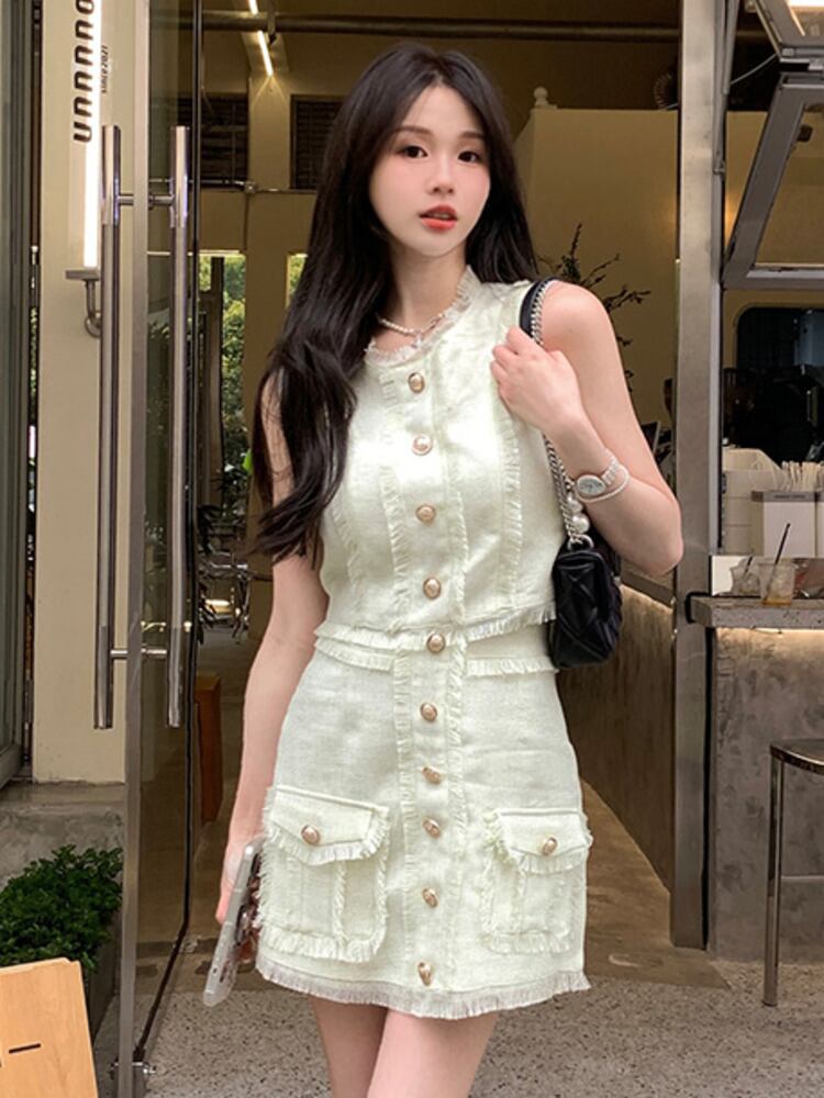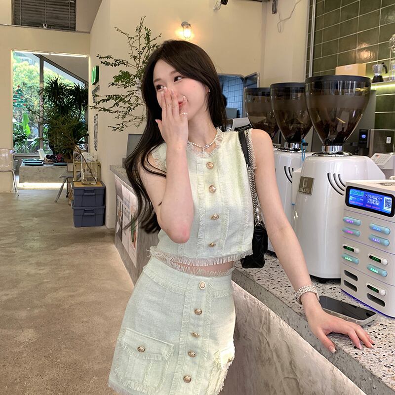 フランス小さ香りツーピースセットクロップトップ + ミニスカートセット OL 夏 2 ピーススーツ サマー 夏物