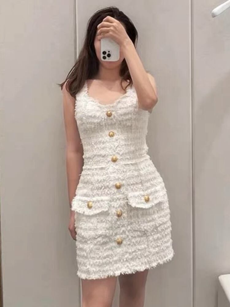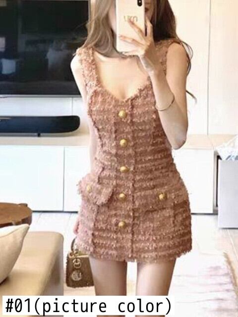 高級スモールフレグランスツイードドレス夏甘いショートドレスパーティー Vestidos ローブ roupas feminina 大人ガーリー スウィート キュート カジュアル サマー 夏物 フェミニン