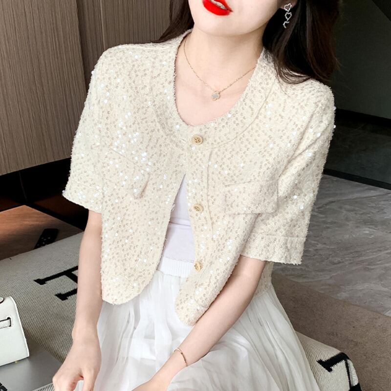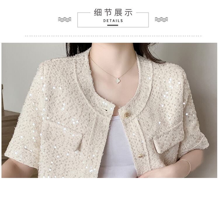 フランス小さ香りツイード ジャケット Y2K ストリート スパンコール ショート コート チャケータ