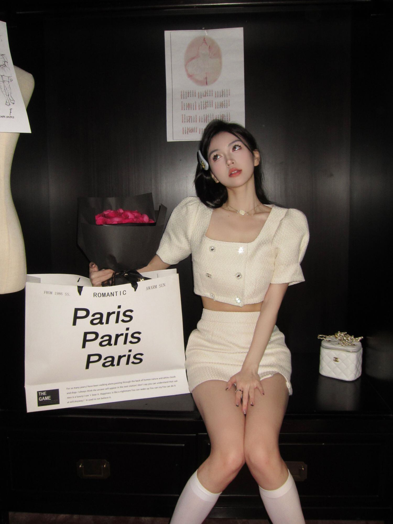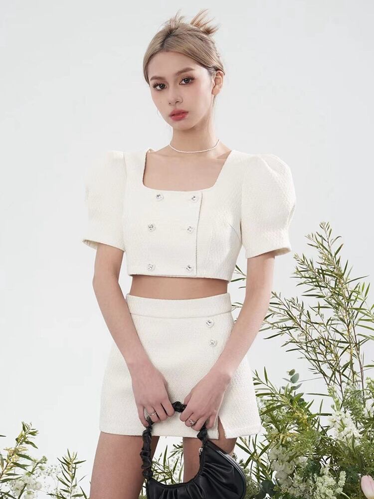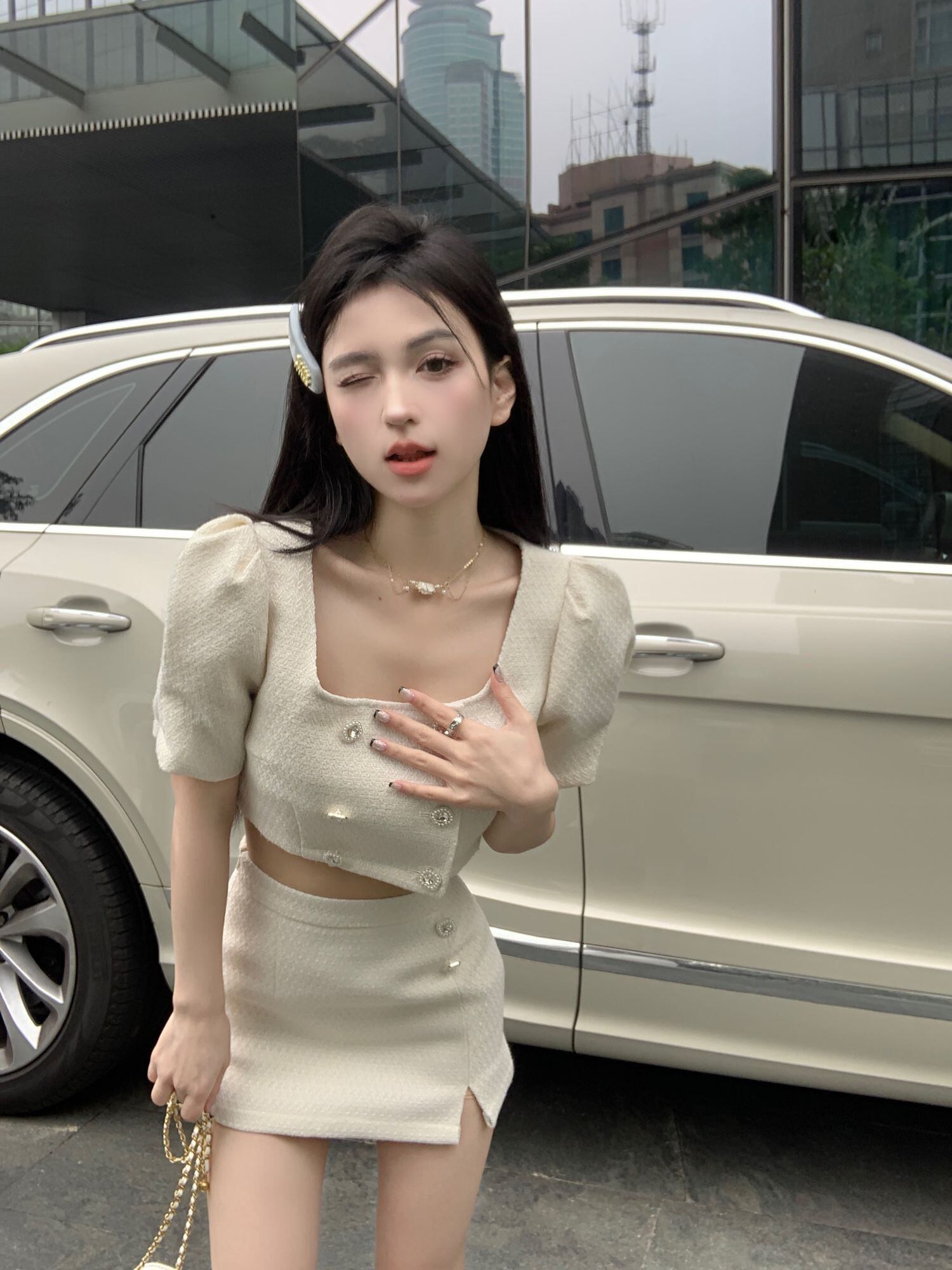 フレンチシック小さフレグランス 2 点セットクロップトップ + ボディコンスカートスーツ甘い 2 点セット 大人ガーリー スウィート キュート カジュアル
