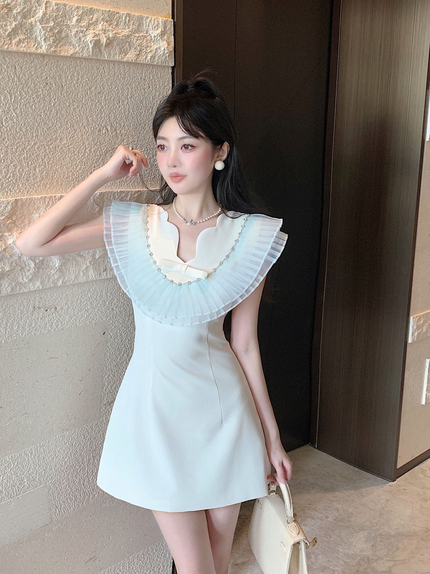 フランス高級刺繍フレア小さ香りミニドレス OL ドレスパーティーローブ Vestidos レッド