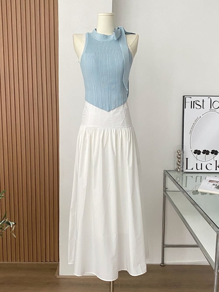 ストリートフレンチツーピースセットニットクロップトップ + ロングスカートスーツ甘い 2 ピース衣装 大人ガーリー スウィート キュート カジュアル