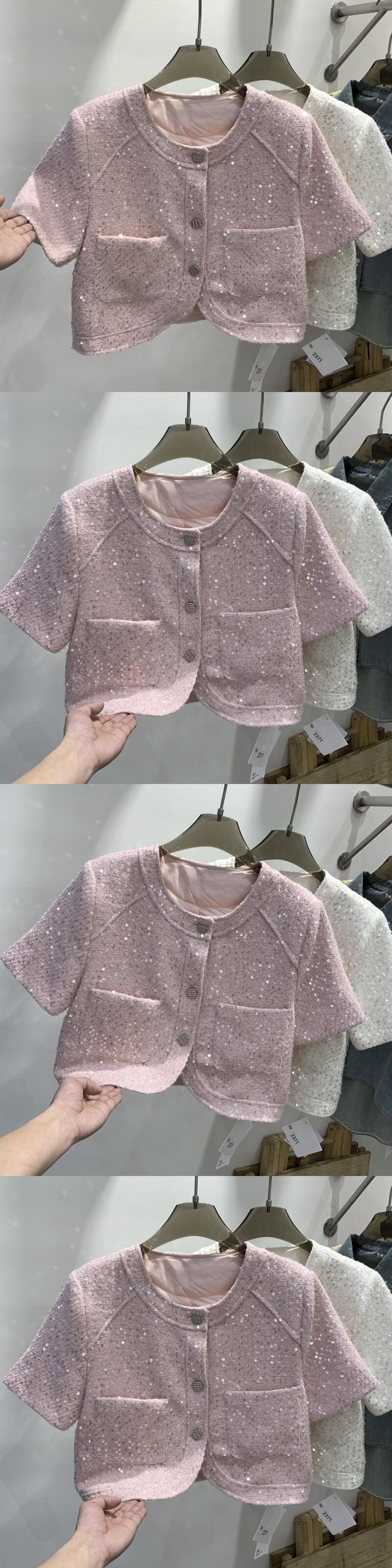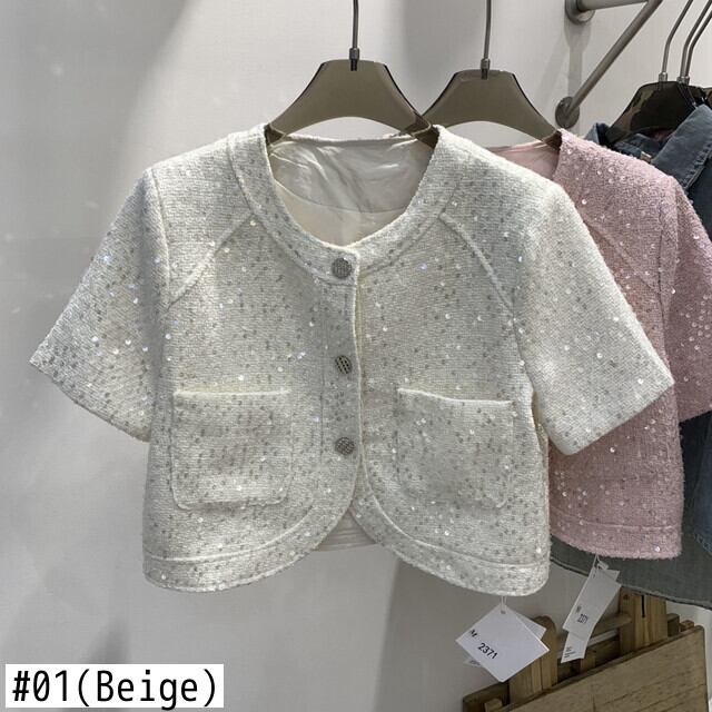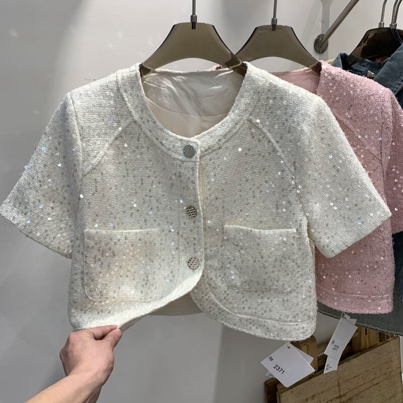 フレンチスモールフレグランスツイードジャケットY2Kストリートスパンコールショートコートアウターウェア