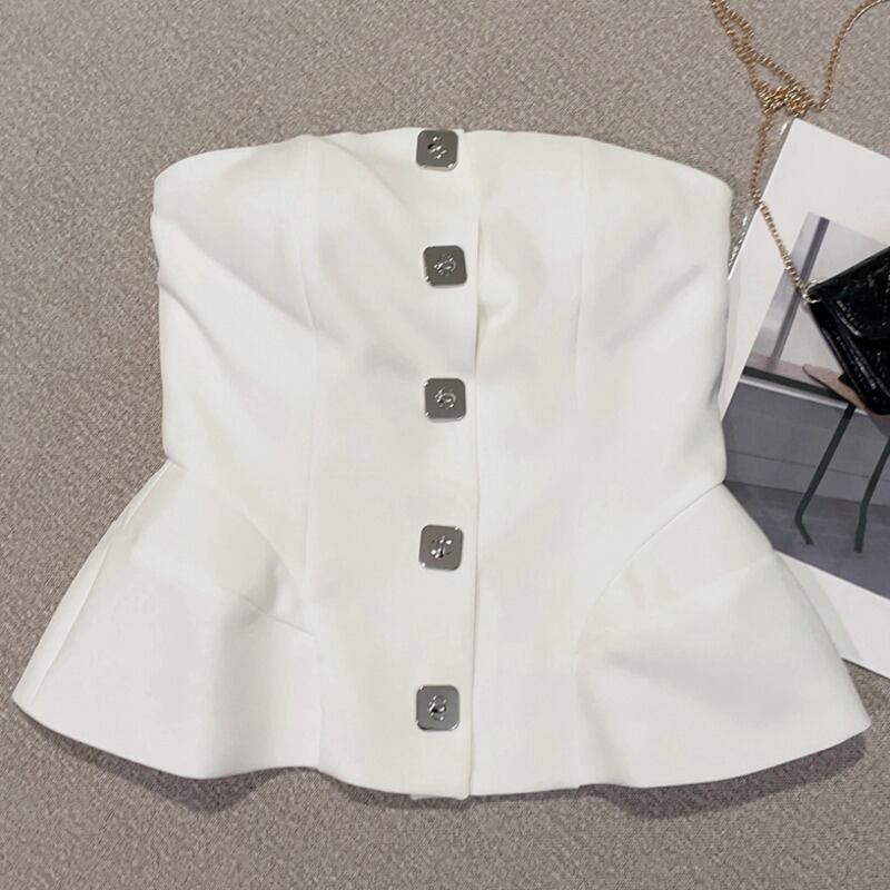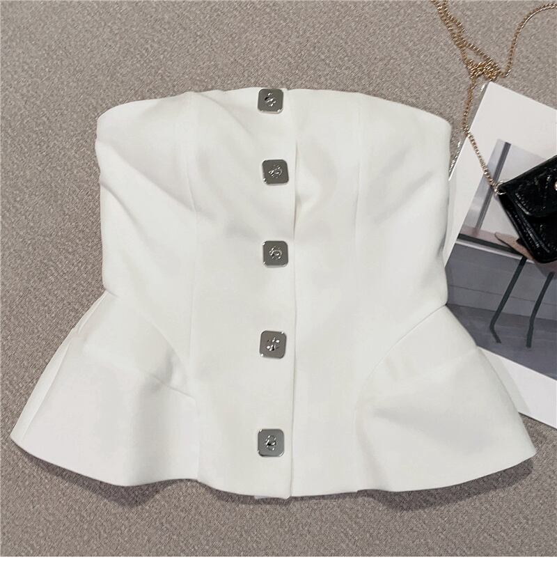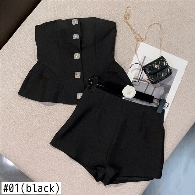 フレンチスモールフレグランスツーピースセットセクシー HotSweet ストラップレスクロップトップ + ウエストショートセット夏 2 ピースパンツセット 大人ガーリー スウィート キュート カジュアル サマー 夏物