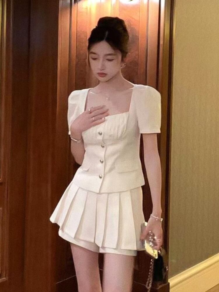 ストリートフレンチスモールフレグランスツーピースセットレディースクロップトップ+プリーツスカートスーツ2ピーススカートセット