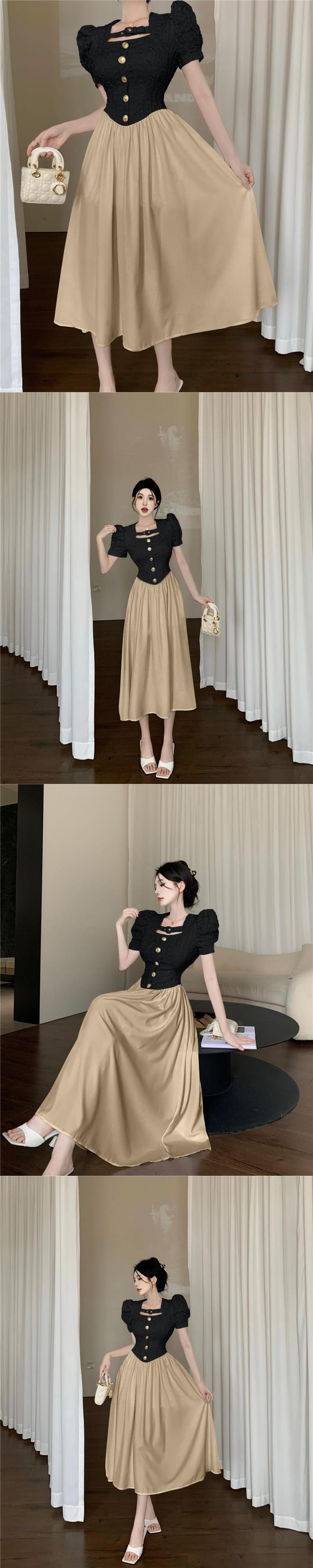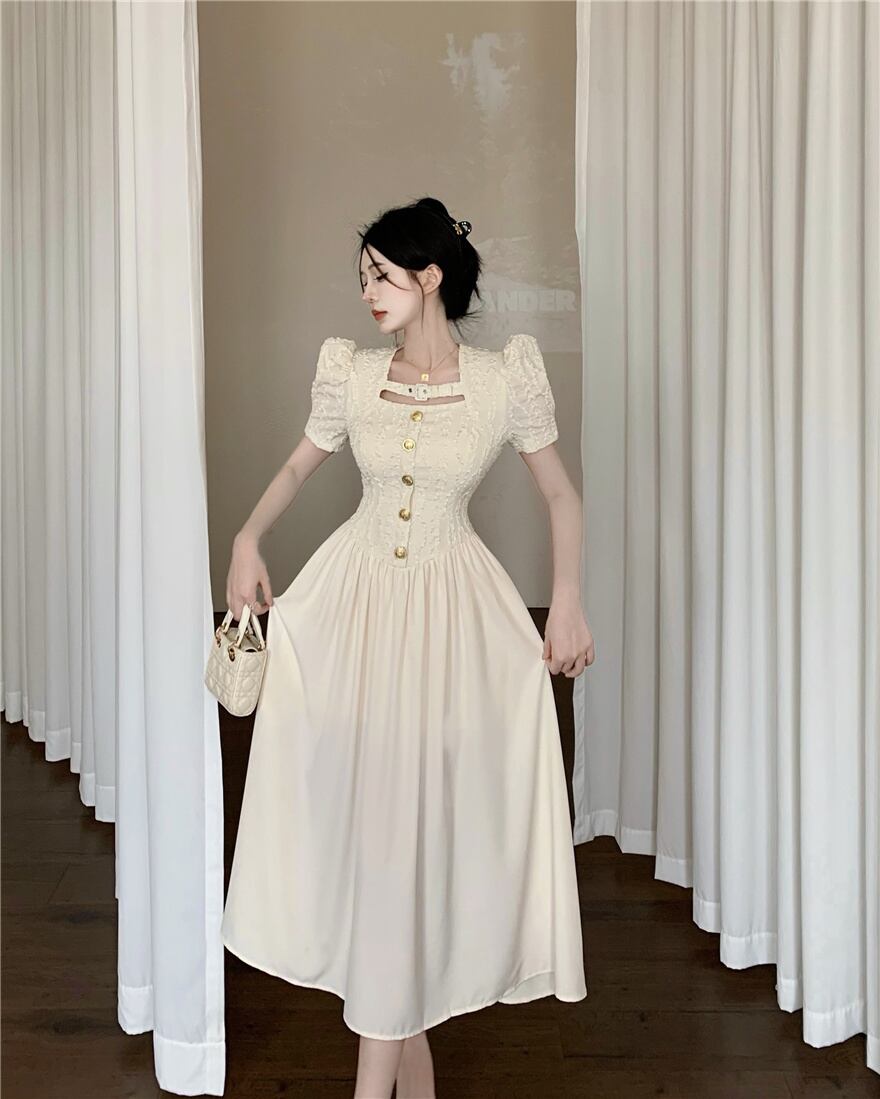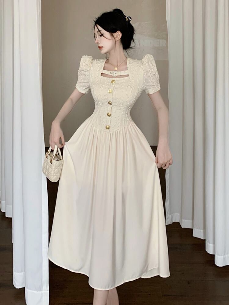フランスプリーツ半袖ミディロングドレス夏ドレス Y2k パーティー Vestidos ショート ハーフスリーブ サマー 夏物